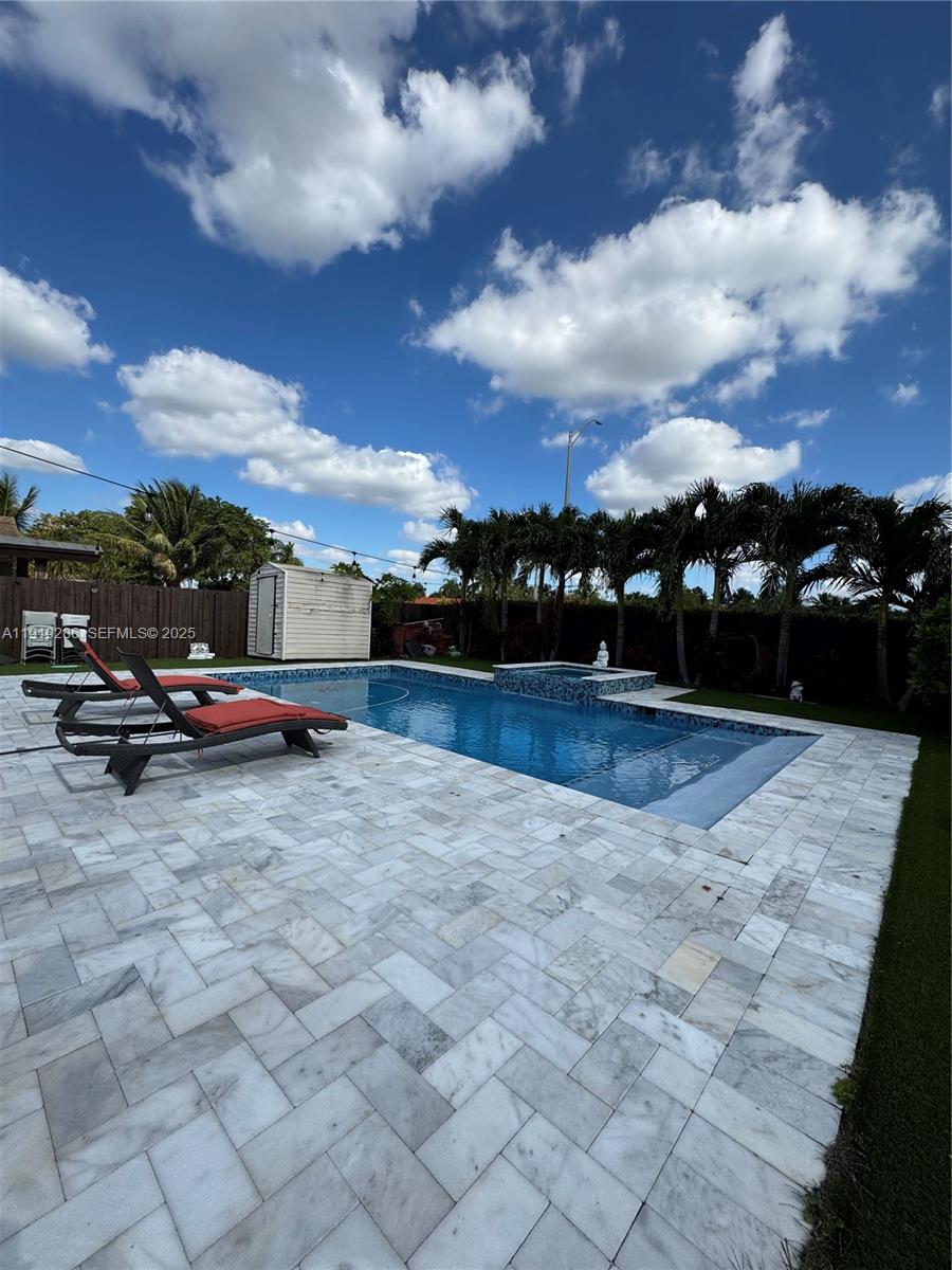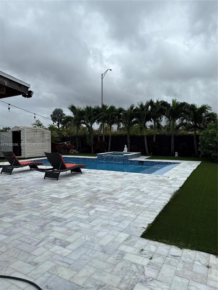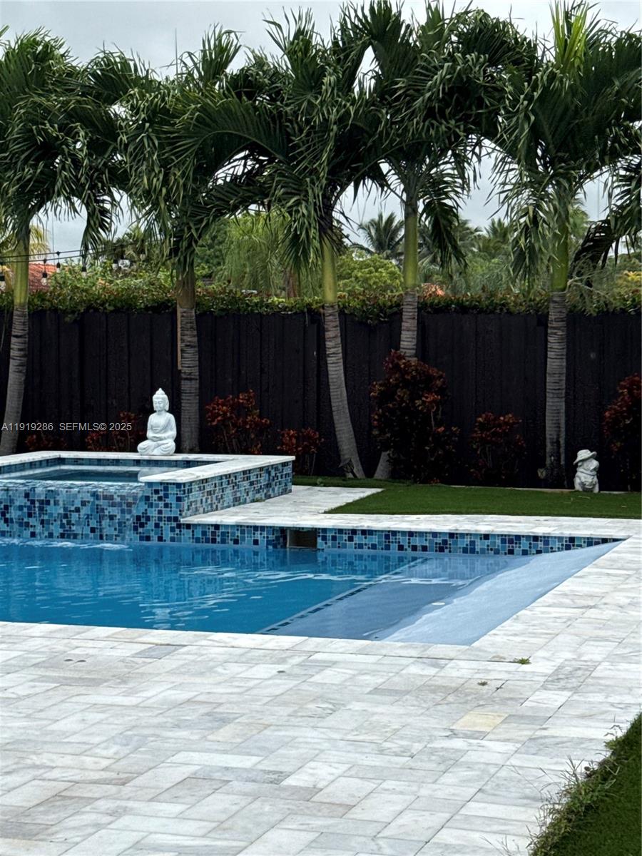 Welcome to this remodeled 3-bedroom, 2-bath home offering an open and spacious floor plan with high ceilings and abundant natural light. The updated kitchen features modern finishes, ample cabinetry, and a functional layout ideal for everyday living and entertaining. The outdoor area is designed for low maintenance and enjoyment, with high-quality artificial turf and a private pool with an attached jacuzzi. This backyard provides a relaxing setting for gatherings or quiet evenings at home. Additional highlights include upgraded interior finishes, a comfortable primary suite, and convenient access to nearby amenities, dining, and transportation. This home combines modern updates with an inviting layout, creating a move-in-ready opportunity.