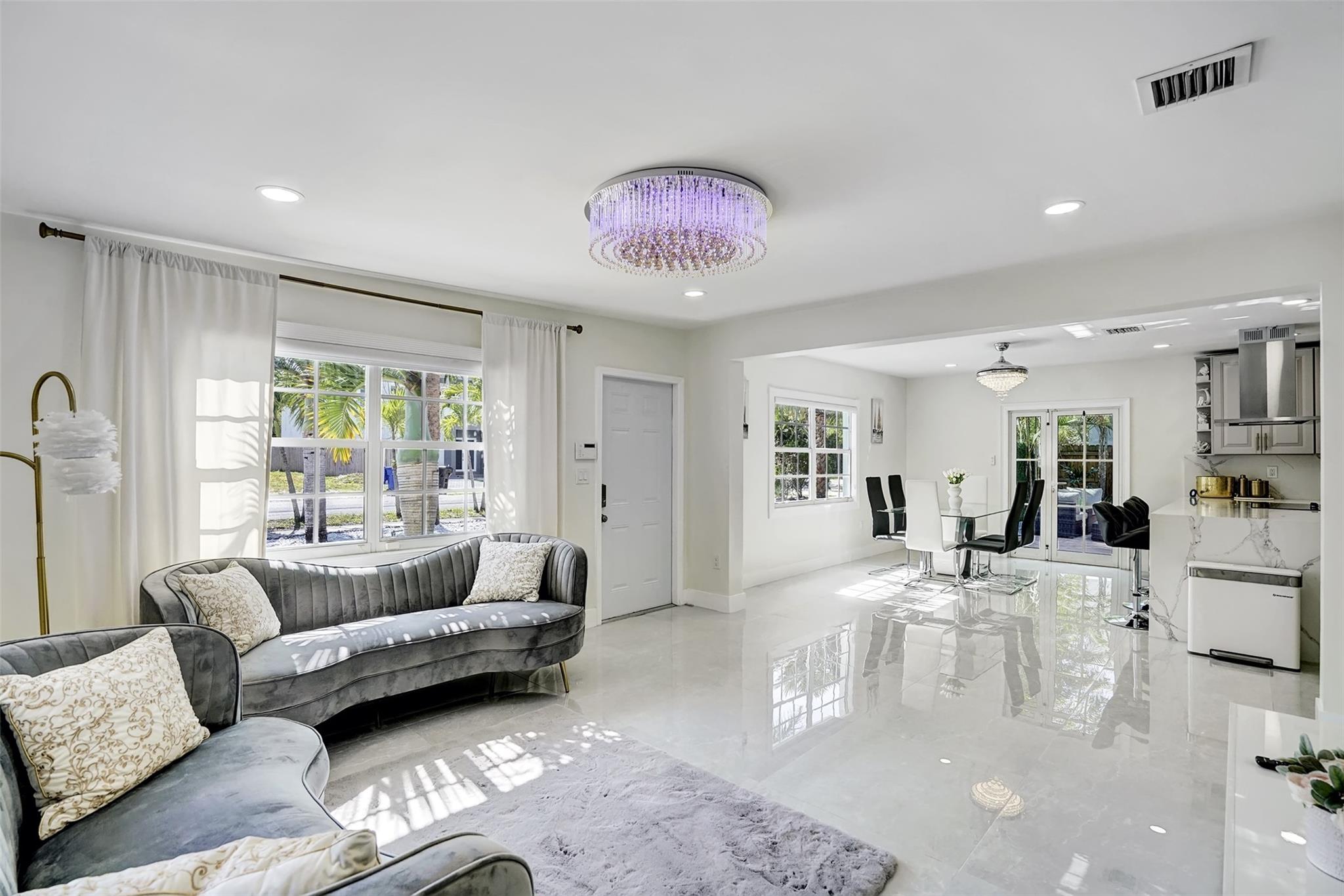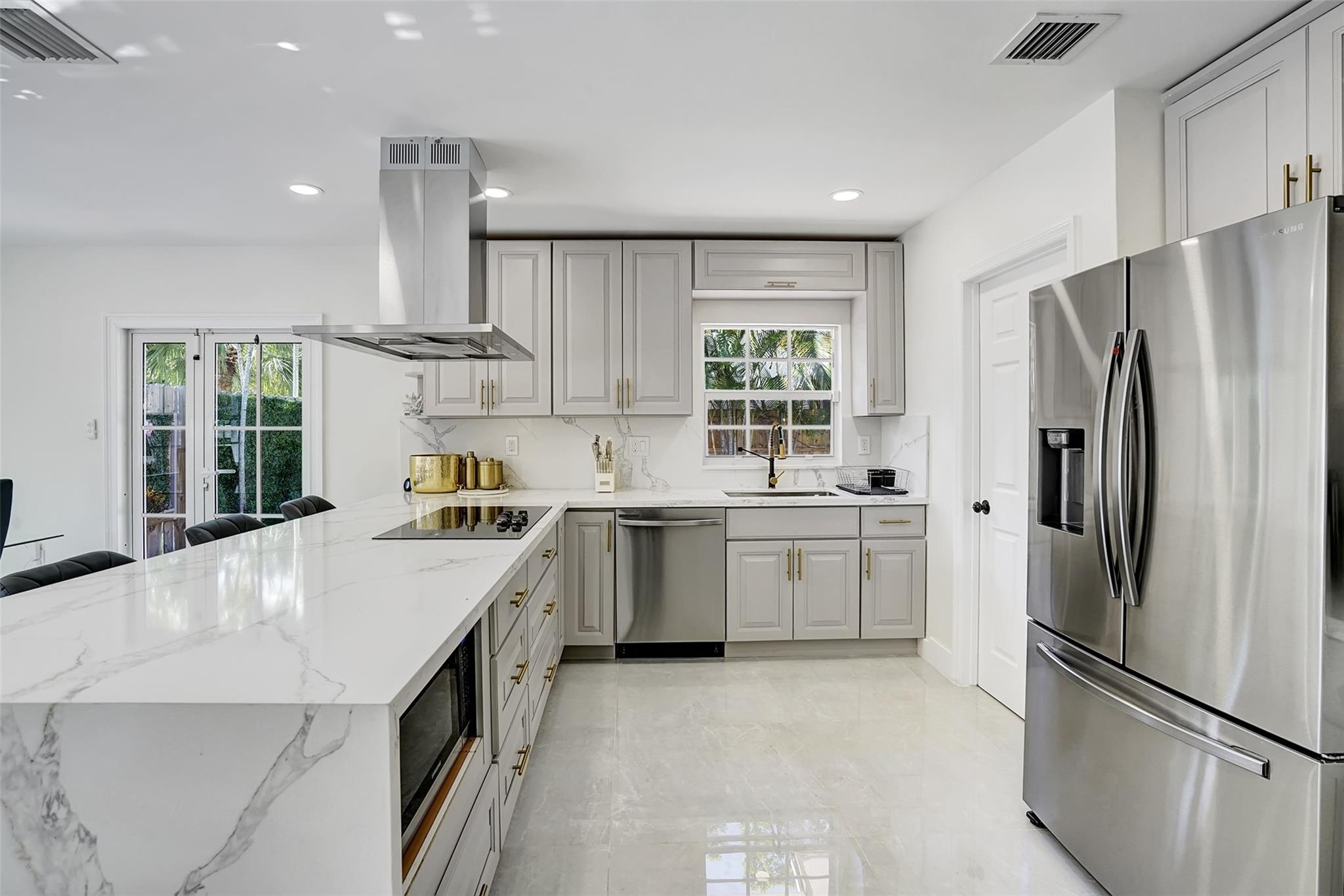 Step into a beautifully renovated 3 bedroom, 2 bathroom home that feels brand new. The entire space has been upgraded with elegant 32x32 tile flooring, a gorgeous modern kitchen with all new appliances, quartz counters, full-height backsplash, and a spacious island with a sleek vent hood. Both bathrooms have been completely remodeled with stylish finishes and frameless shower doors. Outside, enjoy a large private pool and an expansive 10,000 square foot lot that gives you plenty of room to relax or entertain. The AC is from 2020 and the home has a brand new water heater. This property is in a prime location just minutes from downtown Fort Lauderdale, Las Olas, shops, restaurants, and the beach. A rare combination of comfort, style, and convenience.