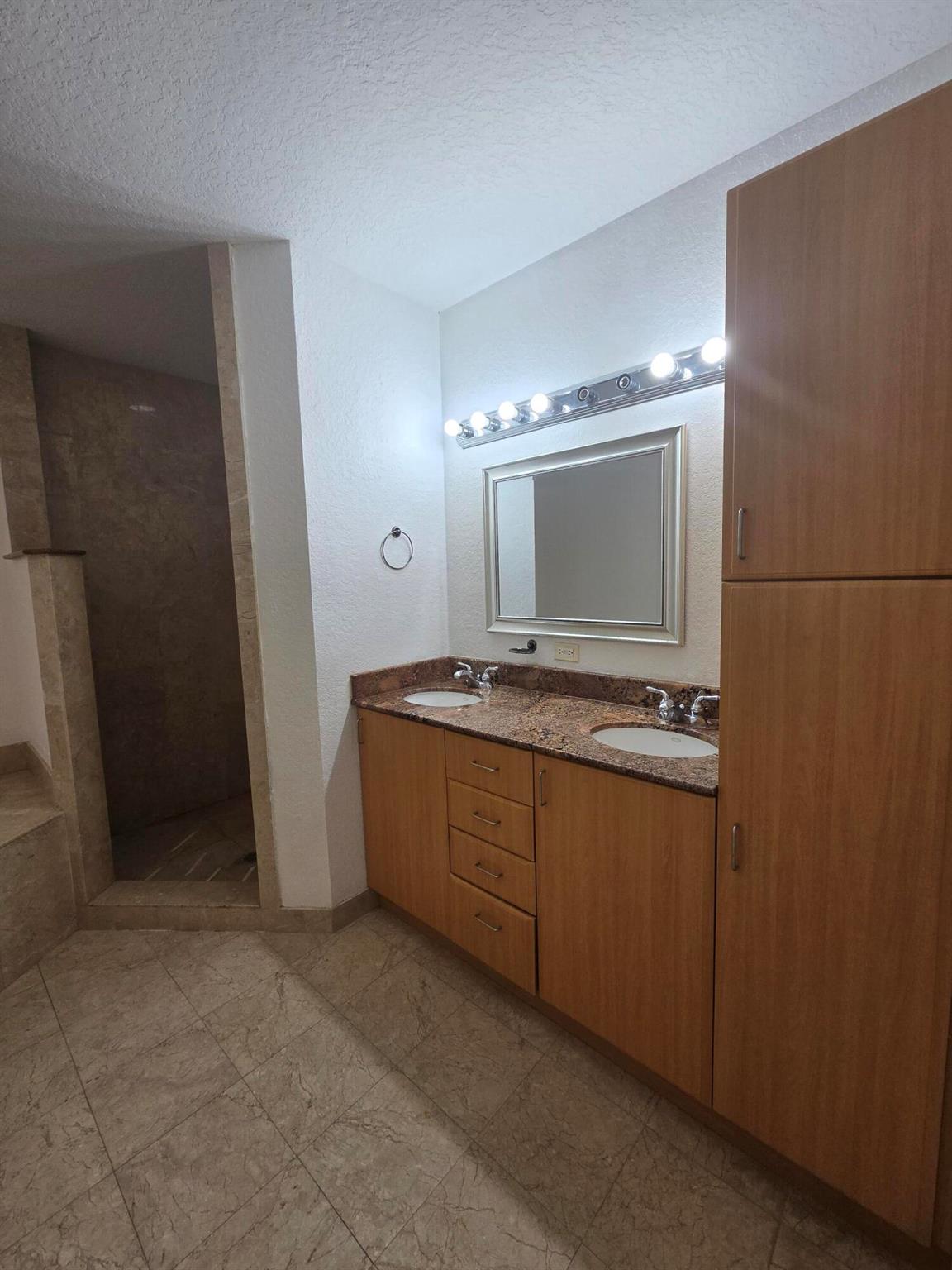 Luxury ground floor spacious 3/2 in resort style development in the heart of WPB! Prime location within a walking distance to Palm Beach Outlets & Whole Foods; just off I-95, 10 min to Palm beach airport & to the hospital, just 3-4 miles to the downtown of WPB with intercostal & public beaches. Unit features newer stainless steel appliances & new W & D, freshly painted, spacious master bedroom with 2 walk-in closets, a master bath with separate shower & tub. Open floor plan with a great room & nice size patio, 10ft ceilings throughout , large kitchen with cherry wood cabinets, granite, eat-at countertop. Both guest bedrooms have ceiling fans & mirrored closets. Beautiful community facilities which were recently remodeled & upgraded: pool, sauna, gym, greeting rooms, etc.