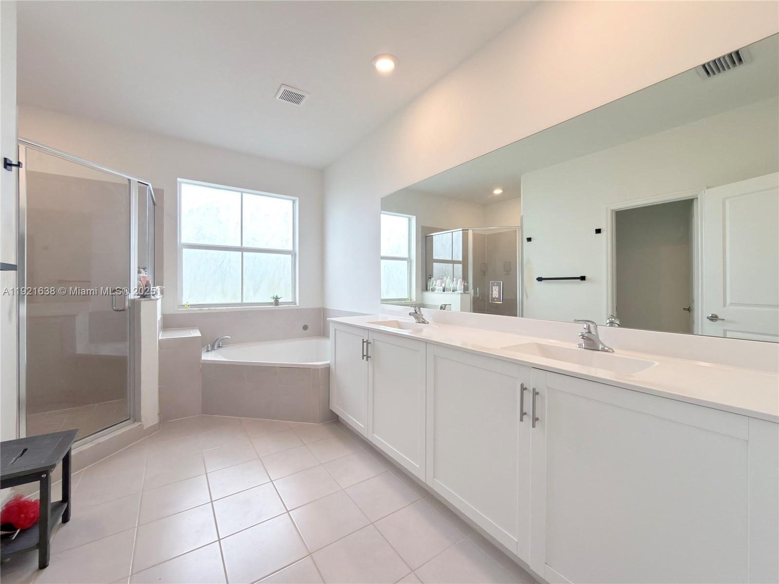 Stunning and spacious 4-bedroom, 3-bath single-family home in a modern new community! Offering over 2,400 sq ft of living area on a 4,000 sq ft lot, this home features a large backyard perfect for outdoor enjoyment. One full bedroom is conveniently located on the first floor—ideal for guests or multigenerational living. Enjoy major savings on electricity with energy-efficient solar panels. Home includes a double garage and everything is brand new for a fresh, modern feel. The community offers a beautiful pool and great amenities. A perfect place to call home—don’t miss this opportunity!
