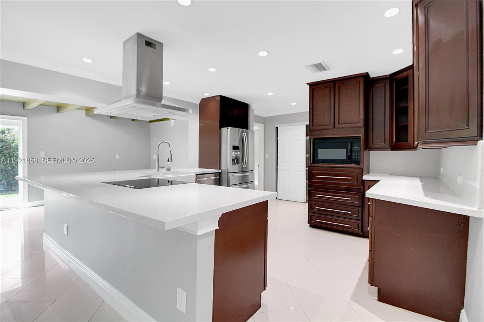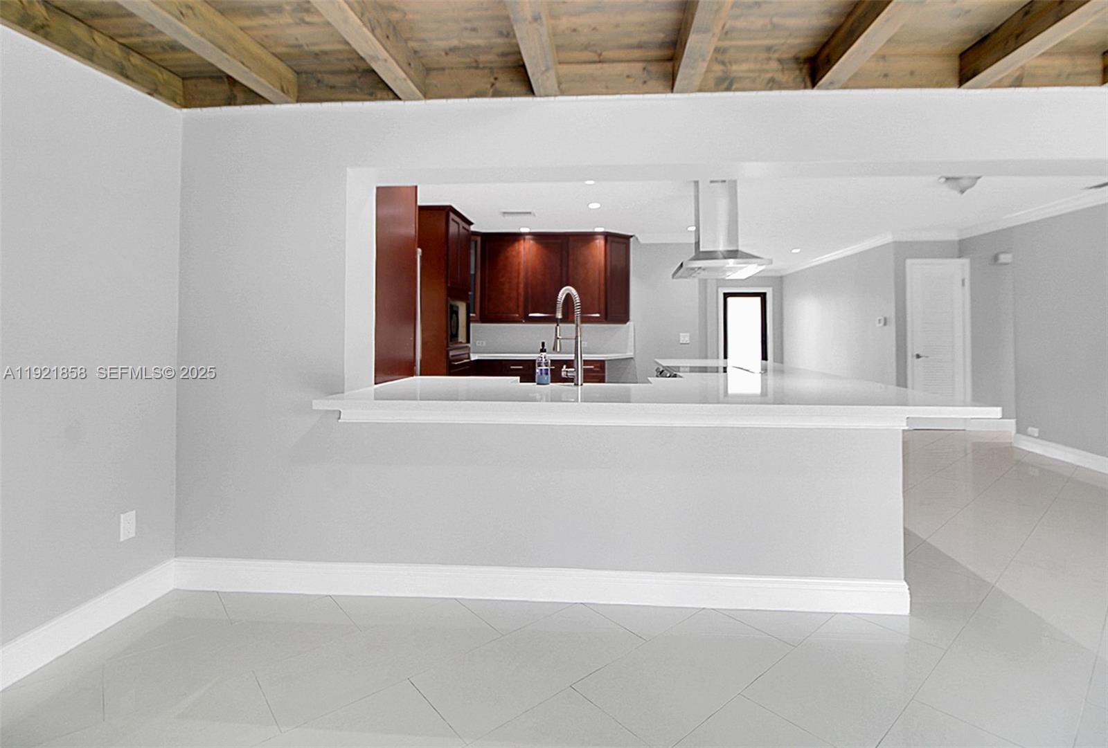 This graceful and welcoming home offers bright, open living spaces with plenty of natural light, upgraded insulation to keep the house cool, and hurricane-impact tinted windows for added comfort and safety. The kitchen opens to a spacious living area with beautiful exposed wood ceiling beams, perfect for entertaining or everyday living. A charming built-in window seat and surrounding shelving add character and functionality to the additional living room. The large master bedroom includes a luxurious bathroom with both a tub and shower. Enjoy a car garage, a 100 sq ft tool shed, and a great patio and terrace perfect for family gatherings. Located in a quiet, friendly neighborhood just a short walk from FIU, this home is the perfect blend of comfort and convenience. Come see it now!