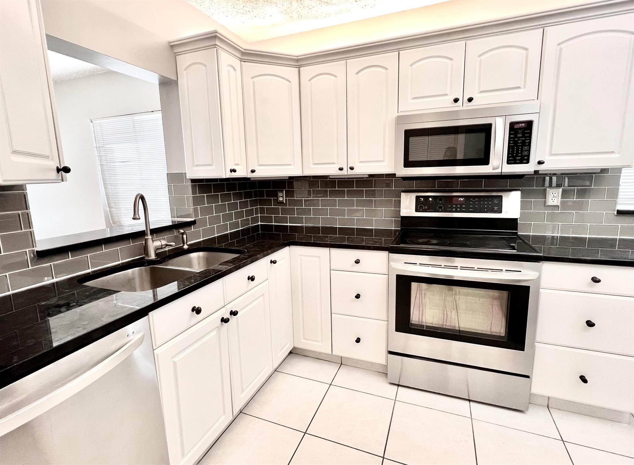 This 2 bedroom 2 bathroom first floor condo features a modern feel with tile flooring throughout and laminate in the second bedroom. The updated kitchen includes stainless steel appliances, and there's plenty of closet space and the added bonus of a washer and dryer in the condo for your convenience. Step outside to enjoy a park like setting right at your back door and the community pool just a short walk away. This is an all age community located conveniently in Delray Beach.