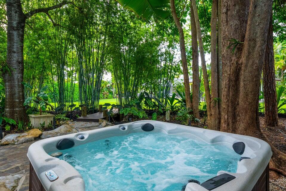 Seasonal Luxury Retreat in Wellington - Close to WEF, Polo & Palm Beach Welcome to your private South Florida retreat, a lush tropical paradise set on a fully fenced acre in the heart of Wellington. This single-story ranch estate has been completely remodeled inside and out, offering nearly 3,000 sq. ft. of like-new living space plus an additional 1,500 sq. ft. of screened-in outdoor living designed for seamless entertaining and relaxation. Inside, the open-concept great room boasts vaulted ceilings, rich wood floors, and sliding glass doors that blend indoor and outdoor living. The chef's kitchen features quartz countertops, stainless steel appliances, and custom cabinetry with a pass-through window for easy outdoor dining.