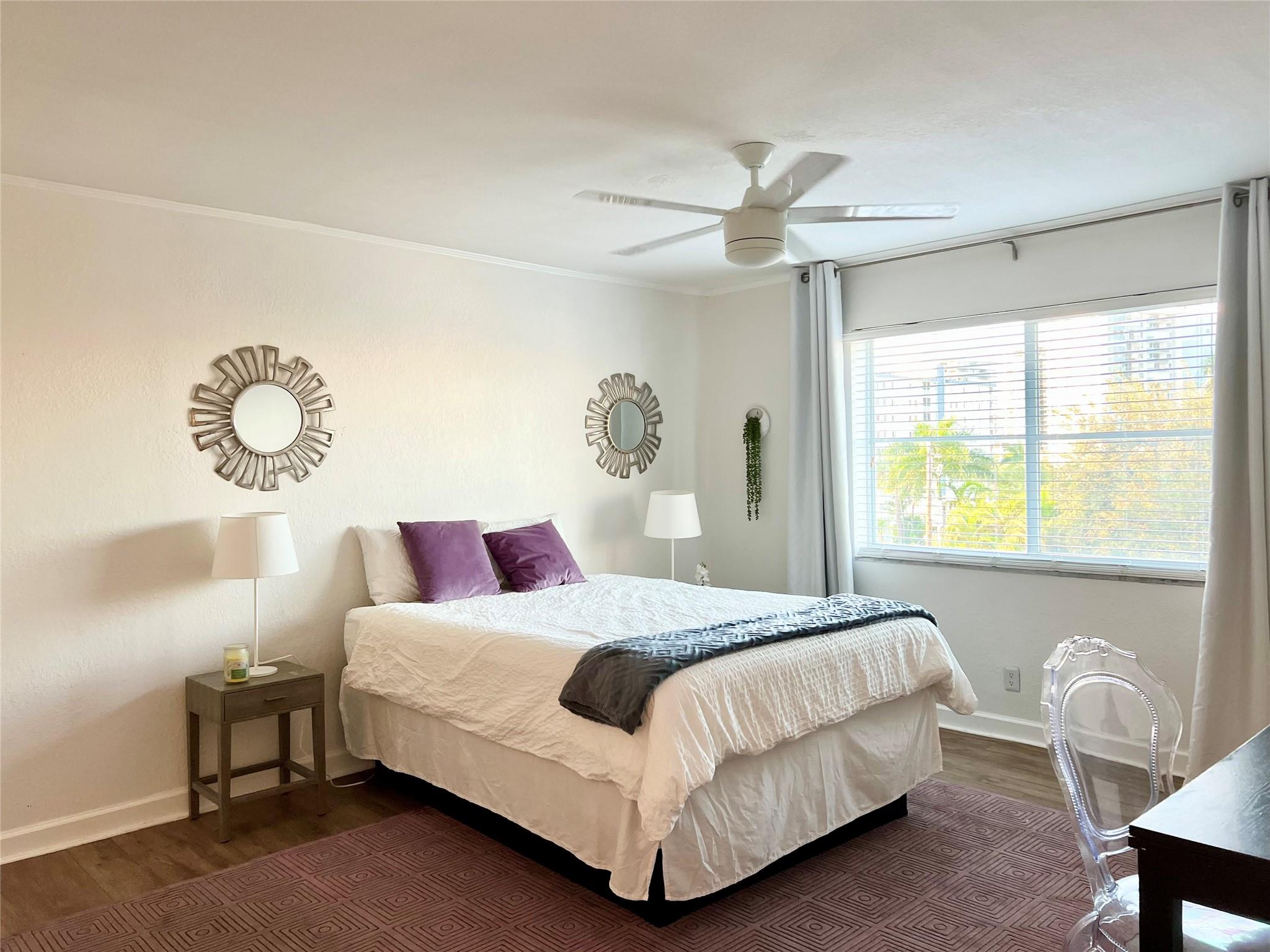 Beautifully light renovated condo in heart of North Beach Village. Only blocks to the beach, restaurants and entertainment. Large unit with big windows, 1 bed/1.5 bath, and approx 850 square feet on 4th floor. Totally remodeled with walk in closet. New kitchen, granit counter tops and remodeled bath. Lots of storage. Designed in a modern Scandinavian style. One assigned parking spot. Community laundry room with washer/dryers on each floor. May be rented immediately furnished. 1 year lease $2150 a month. At move in first and last month and security deposit. Application to the association $150. Credit and background check required.