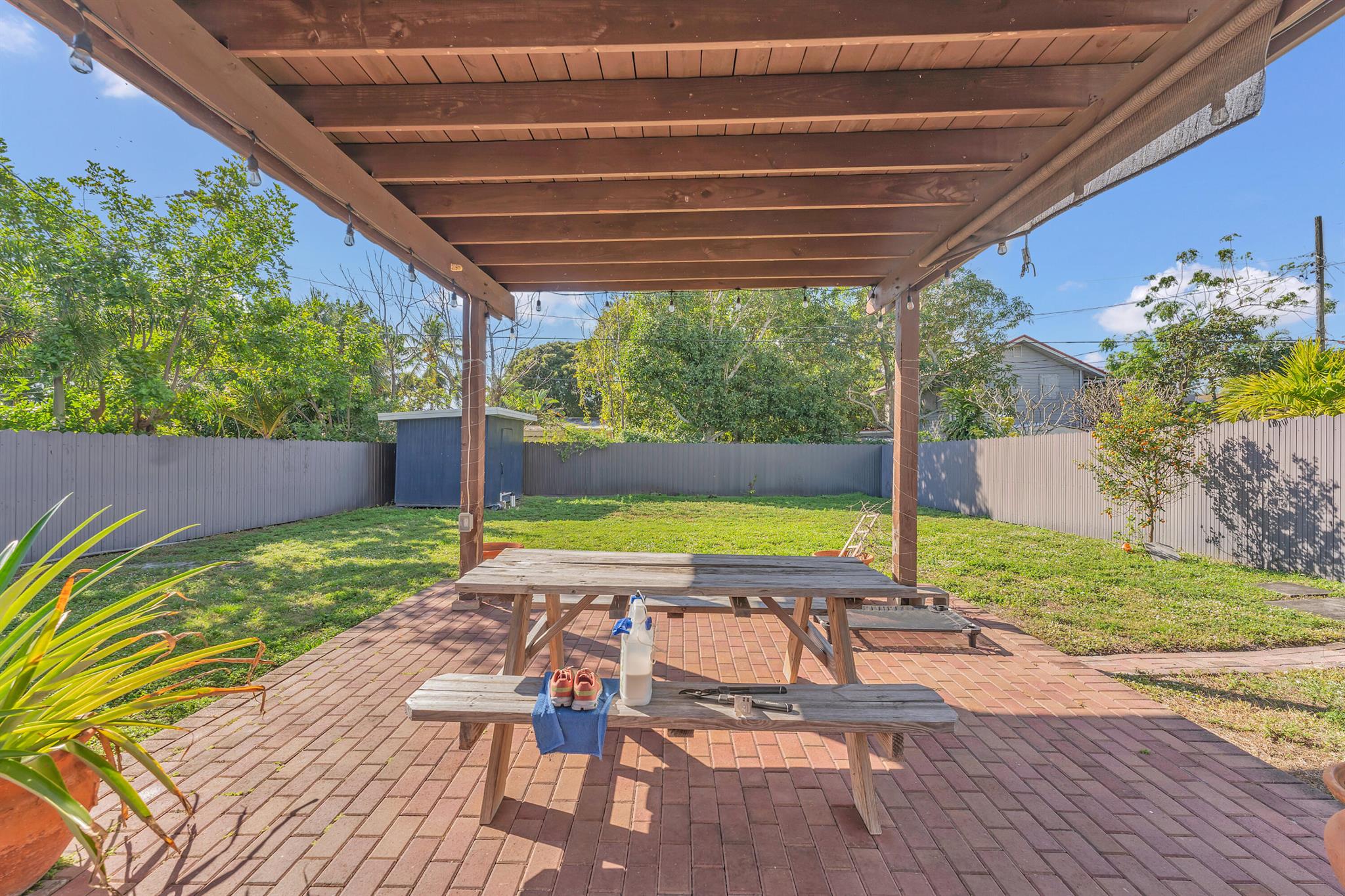Available for short-term rental or an annual lease. No HOA.Just 3 miles from the beach! Charming 2-bed, 1-bath home offering privacy, comfort, and convenience. Features a newer gate and fence, spacious backyard with a kumquat/tart orange tree, perfect for entertaining or relaxing outdoors. Prime location near shopping, I-95, the zoo, PBI Airport, and downtown. Recent updates include a fully renovated kitchen (2021), new interior/exterior paint, flooring, doors, remodeled bathroom, shed, and front gate. A/C (approx. 6 yrs) and water heater (5 yrs) well maintained. Home feels larger than the stated square footage.