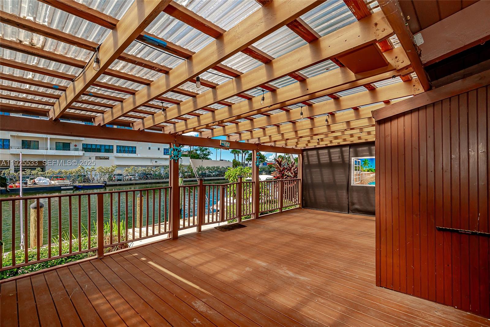 Waterfront 3/2+den Townhouse with a private boat dock in your backyard for at 28 feet boat! Direct ocean access with no fixed bridges. Property has super high ceilings and is all remodeled and renovated, no expense spared, high-end porcelain flooring, wood cabinets , granite countertops,mosaic glass, complimenting stainless steel appliances. Impact windows & doors. Master bath offers dual sink with steam rainfall shower and jetted tub. 2 assigned parking spaces + additional guest spots. Heart of Hallandale Beach, minutes to beach, houses of warship, and stores.