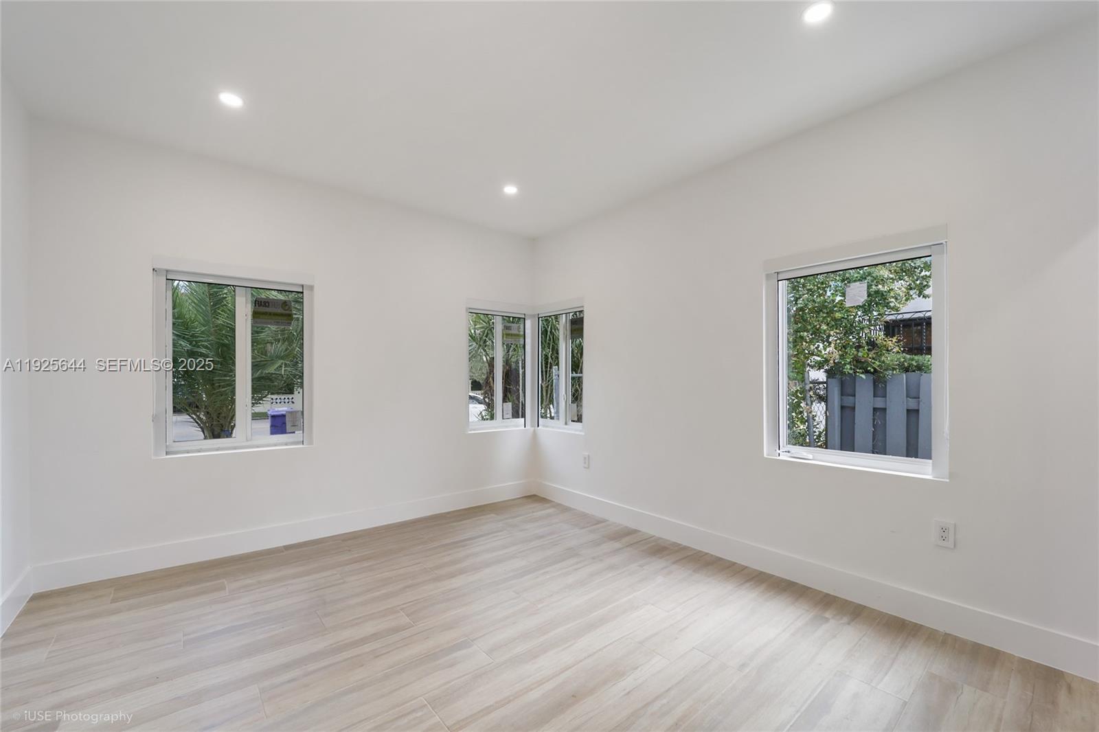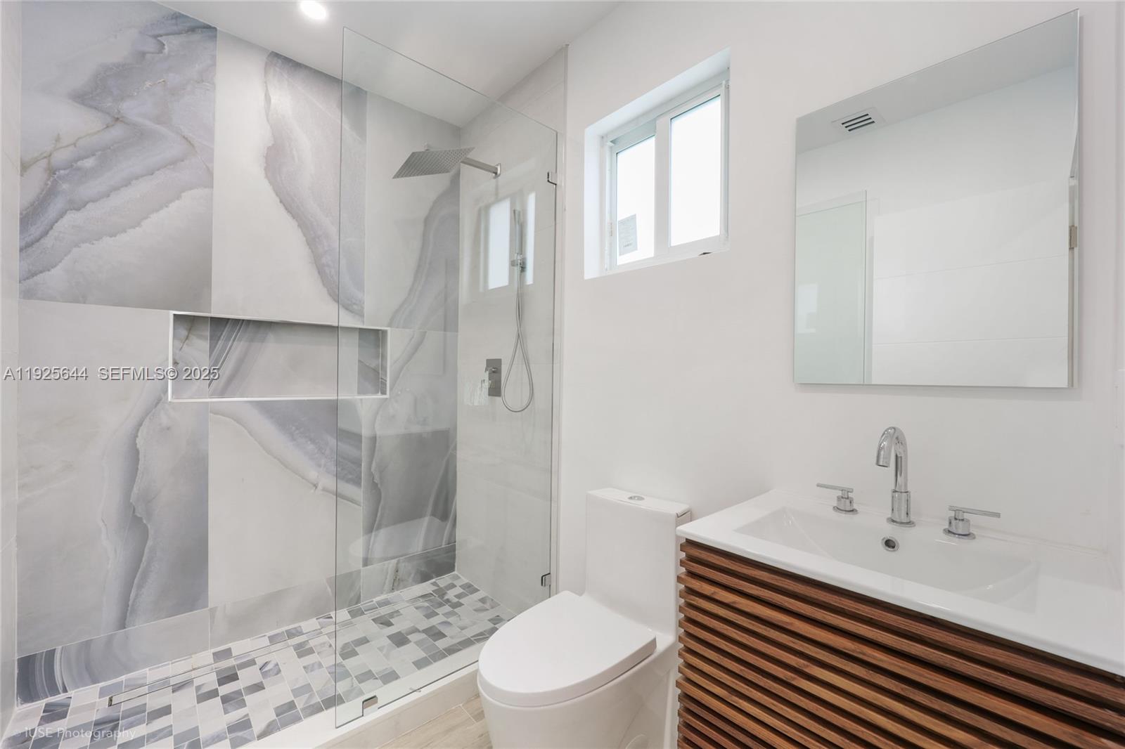 Stunning fully renovated home in the heart of Shenandoah featuring a bright open layout and elegant modern finishes throughout. This 3BD/3BA residence offers a spacious kitchen with quartz waterfall island, custom cabinetry, premium appliances, and designer pendant lighting. Beautiful porcelain wood-look floors flow seamlessly into the living and dining areas, creating a warm and inviting atmosphere. Luxurious bathrooms include floor-to-ceiling tile, rainfall showers, and contemporary vanities. The primary suite offers a walk-in closet with custom built-ins and a spa-style bath. Enjoy a large fenced yard, covered front porch, new driveway, and ample parking. Minutes from Coral Gables, Coconut Grove, Brickell, and top schools. Move-in ready and impeccably finished.