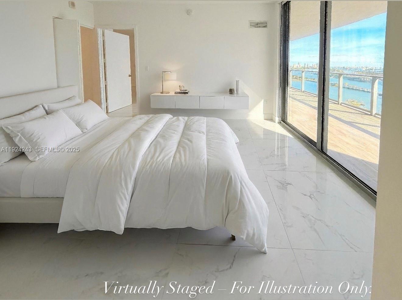 Step into this spacious and elegant 3-bedroom, 3.5-bath home at Aria on the Bay, featuring a private elevator with secured foyer entry for complete privacy and comfort. This bright residence offers beautiful bay and city views through floor-to-ceiling impact windows, an open-concept layout, and a modern European-style kitchen with sleek cabinetry, quartz countertops, and premium stainless steel appliances. Each bedroom includes its own en-suite bathroom and custom closets. Enjoy resort-style living with sunrise and sunset pools, jacuzzi, fitness center, yoga studio, spa, sauna, steam room, business center, theater room, game room, kids’ playroom, resident lounge, and BBQ area. Located in the heart of Edgewater—steps from Margaret Pace Park and minutes to Wynwood, the Design District, Brickell, Downtown, and Miami Beach. Easy to show. Immediate occupancy available.