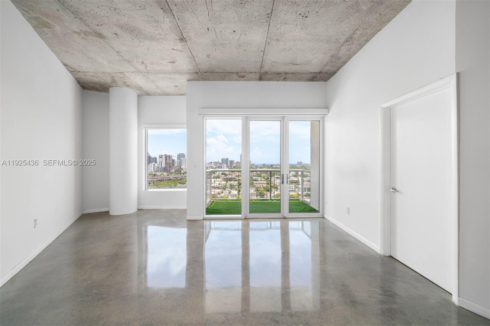 Experience modern Miami living in this renovated 1,009 SF, 2-bed/2-bath residence in a building designed by award-winning Chad Oppenheim. The loft-style home features soaring exposed ceilings, oversized impact windows, polished concrete floors, blackout and sheer shades, new A/C, and an open layout with enclosed bedrooms. The kitchen includes custom cabinetry, quartz countertops, a center island, and premium appliances. The spacious primary suite offers a panoramic window, walk-in closet, and bathroom with bathtub. Enjoy direct water views of the river and intracoastal from the private balcony. Additional conveniences include a Samsung washer and dryer and one assigned parking space (G3-890). Residents indulge in an exceptional collection of amenities: infinity-edge pool, fitness center, sauna and steam room, tennis court, meditation garden, entertainment room with pool table, dog park, business center, valet parking, 24-hour security, bicycle storage, a stunning lobby, and Gallery Hall. Perfectly positioned near Brickell and Downtown, this home offers the best of Miami living in a resort-style setting.
