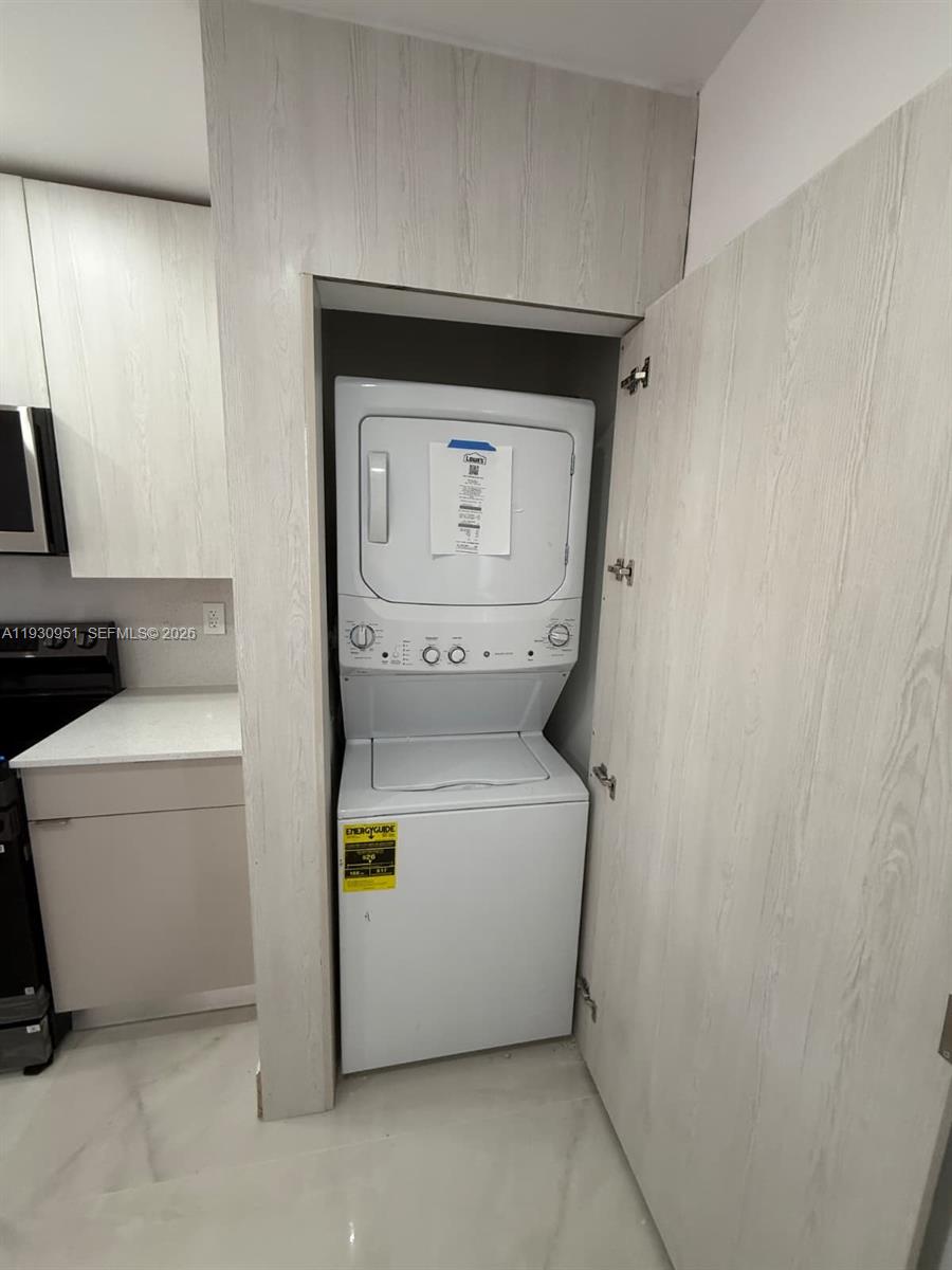 This rare and beautifully renovated 3-bedroom, 2-bathroom condominium features an excellent open floor plan and modern upgrades throughout. The spacious unit offers a private balcony with pool view and the convenience of a brand-new in-unit washer and dryer. The chef’s kitchen is fully updated with a double-door refrigerator and stainless-steel appliances. Additional highlights include porcelain flooring, brand-new impact windows, and modern fresh colors vanities, toilets, and showers. One assigned parking space is included, 2nd vehicle with decal along with ample street parking. Residents enjoy the security of a gated community and a prime location near expressways, shopping centers, schools, and dining. The building has successfully completed its 40-year recertification, reflecting its commitment to safety and long-term structural integrity. Community amenities include a pool and a fitness center. Easy to show. Please contact the listing agent to schedule an appointment. Move-in requires first month’s rent and one month’s security deposit. Tenants are responsible for electricity and renter’s insurance. No pets allowed. Please note: Photos reflect work in progress. All renovations will be completed by January 15 or sooner.