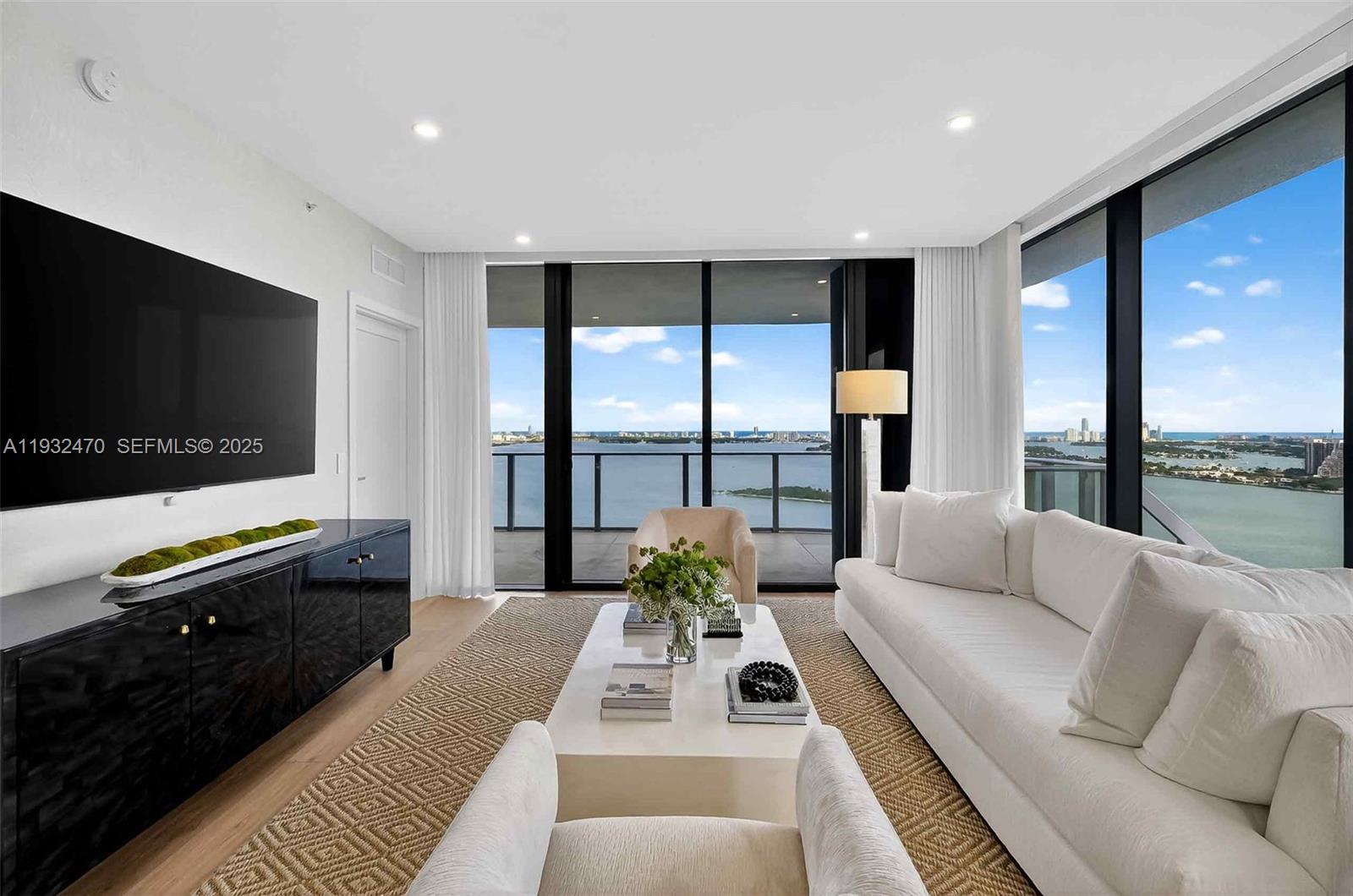 Stunning TURN-KEY waterfront living at its finest! This fully furnished 4-bedroom condo offers breathtaking, unobstructed views of Biscayne Bay, ready for immediate enjoyment. Thoughtfully designed with spacious living areas, a modern open kitchen with Thermador and Bosch appliances, and floor-to-ceiling windows that flood the home with natural light. Each bedroom has an Airloom king bed, providing comfort and privacy, while the primary suite captures stunning bay views. Offered fully furnished with curated pieces, this residence is ideal as a primary lux rental, or second residence. Enjoy resort-style living in one of Miami’s most coveted waterfront settings. This is a must-see! Designed by http://DLTinteriors.com Available for seasonal rentals as well.