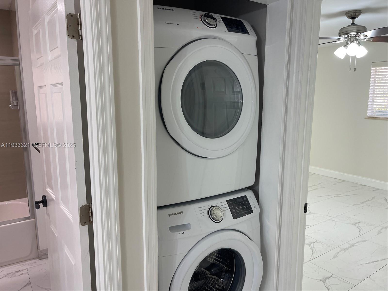 Stunning, fully renovated 2-bedroom, 2-bath duplex ideally situated between Coconut Grove and Coral Gables. Utilities included! Rent includes electricity, water and high speed internet. This residence showcases elegant ceramic flooring, a modern kitchen with stainless steel appliances, a full-size washer and dryer, and beautifully updated bathrooms. Additional highlights include impact windows, a private fenced patio, and thoughtful upgrades throughout. The spacious primary suite offers a generous walk-in closet, while the second bedroom features two traditional closets. Conveniently located just blocks from the Metrorail station, Merrick Park, and an array of shopping, dining, and entertainment options. The property is equipped with security cameras and an alarm system, which the tenant may activate for approximately $70 per month.