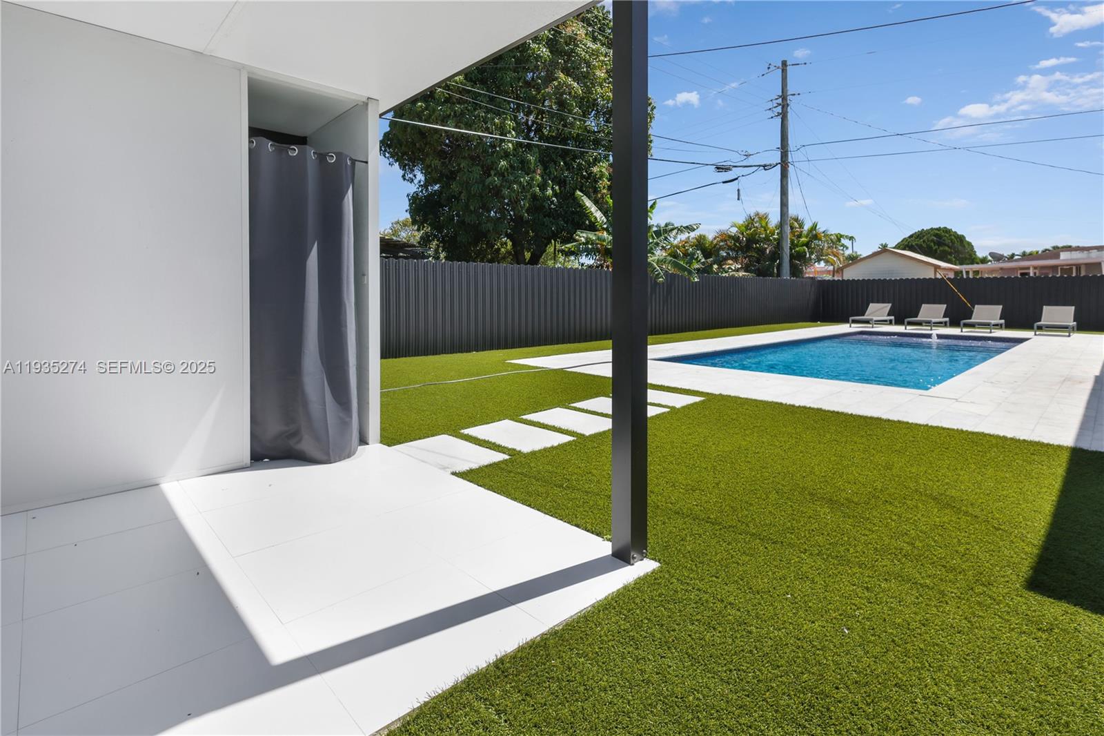 Spacious and beautifully updated rental home featuring a stunning backyard with turf throughout, a large pool, and a convenient outdoor bathroom. The backyard has been fully remodeled and comes partially furnished with outdoor furniture and a TV—perfect for relaxing or entertaining. Impact windows throughout & Ring Cameras for security. NO HOA means fast and easy approval. Currently tenant occupied until 1/15/2026. The landlord is seeking reliable tenants. Landscaping and pool maintenance are included in the rent for a hassle-free living experience! New Fridge & Stove installed (not pictured).