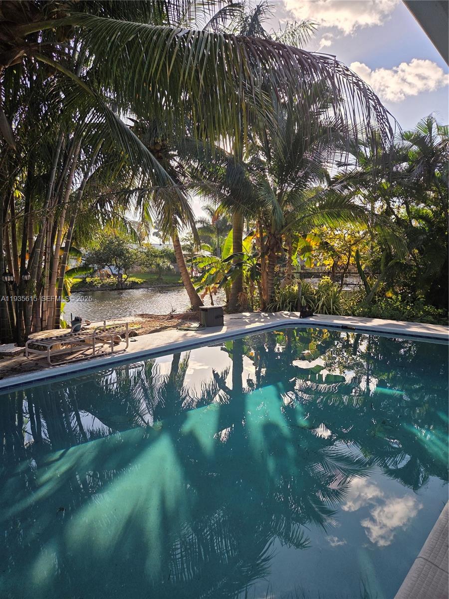 Beautiful waterfront single-family home available for rent in Hallandale Beach, Florida. This 2-bedroom, 2-bath residence offers 1,792 square feet of living space and features beautifully updated tile flooring throughout. Bright and spacious rooms create a welcoming atmosphere, with a large kitchen ideal for everyday living and entertaining. The living room includes a gas fireplace while the Florida room overlooks serene water and pool views. The primary bathroom features a whirlpool tub and a stunning stained-glass window. Enjoy an exceptional outdoor area with a huge pool, a pond with koi fish, lush garden space, and direct canal frontage. Washer and dryer included, gas water heater, and three parking spaces available. Nice-sized bedrooms, abundant natural light, and flexible options to rent furnished or unfurnished. Close walk to Ingalls, Peter Bluesten, and Sunset parks, and near YMCA, Gulfstream Park Racing, Whole Foods, Aventura Mall & Hospital, and Brightline station. All bills are included in rent. A perfect home for your family in a peaceful waterfront setting.