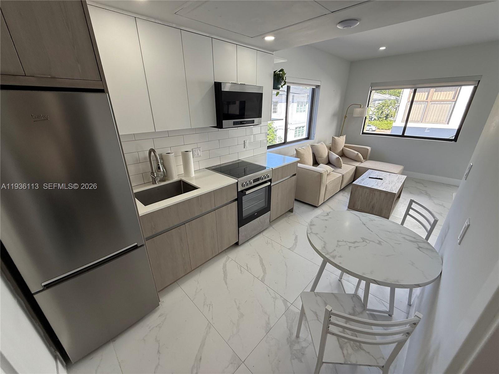 AVAILABLE ON JANUARY 1ST! Full-size washer/dryer and centralized air conditioning in the unit. Wifi included in the rental! Complete renovation of the building and the unit that offers new: roof, windows and impact doors, central air conditioning, plumbing, electricity, external stucco, painting, gutters, railings, fences and landscaping. Each unit has elegant white porcelain tile floors, custom modern kitchens with stainless steel appliances, floor-level shower, recessed lighting, and in-unit washer/dryer. The units are fully furnished and are perfect for luxury living near the beach in the heart of Miami Beach. Walk up to Whole Foods, Publix and Flamingo Park with their tennis courts, swimming pool and sports facilities and, of course, the beach!
