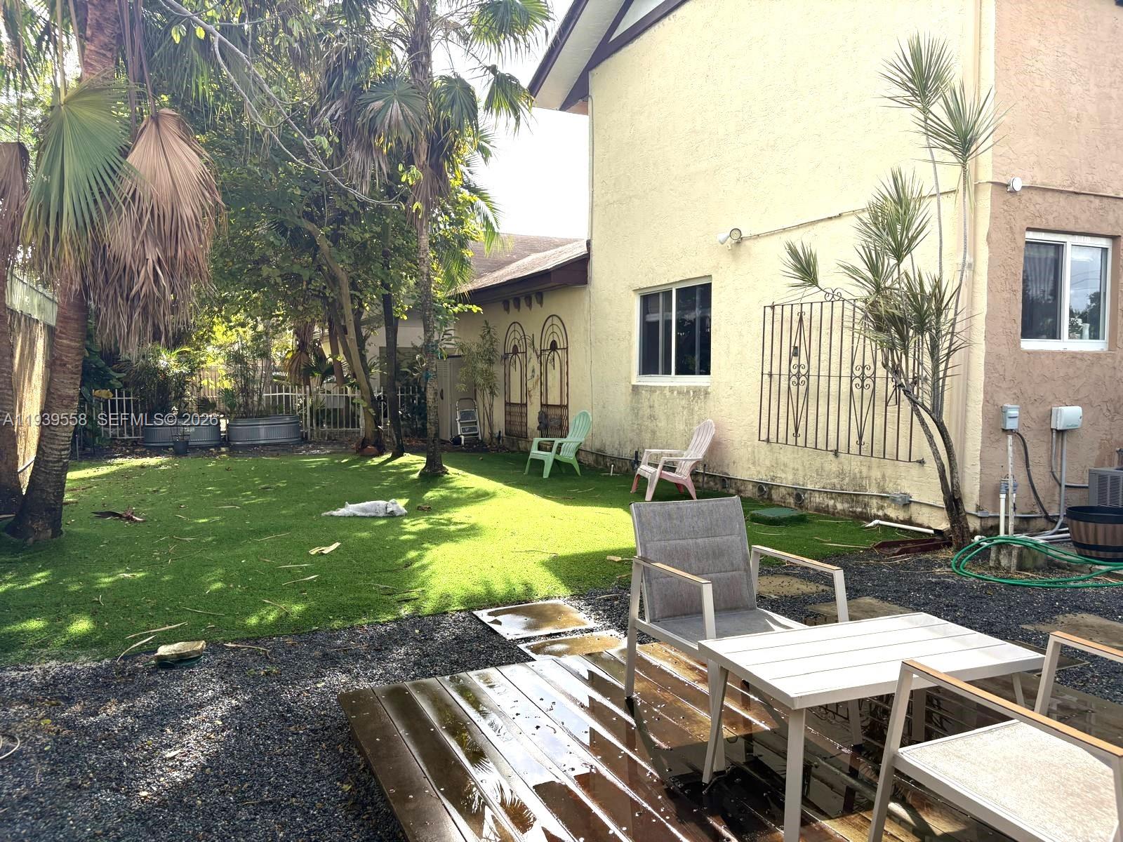 Experience this one-of-a-kind, updated corner 3/2 and 1/2 townhouse located in the heart of North Miami (bordering Biscayne Gardens and Golden Glades). This home is a rare find, featuring an incredible 4-car parking capacity with a 2-car garage, plus an additional 2-car covered carport. Huge oversized L-shaped backyard featuring maintenance-free astroturf, multi-level Brazilian Ipe wood deck with functioning waterfall. Open floor plan features tile and wood floors, full size Washer/Dryer with laundry sink, custom Kitchen with stainless appliances and island, custom blinds and large French doors leading to patio, custom lighting with dimmers and walk in closets. Too many upgrades to mention. Great location close to major highways such as I95 and Turnpike, schools and restaurants and a few miles from the beaches. .. Landscaping and pest control included ***Easy to show and rent***
