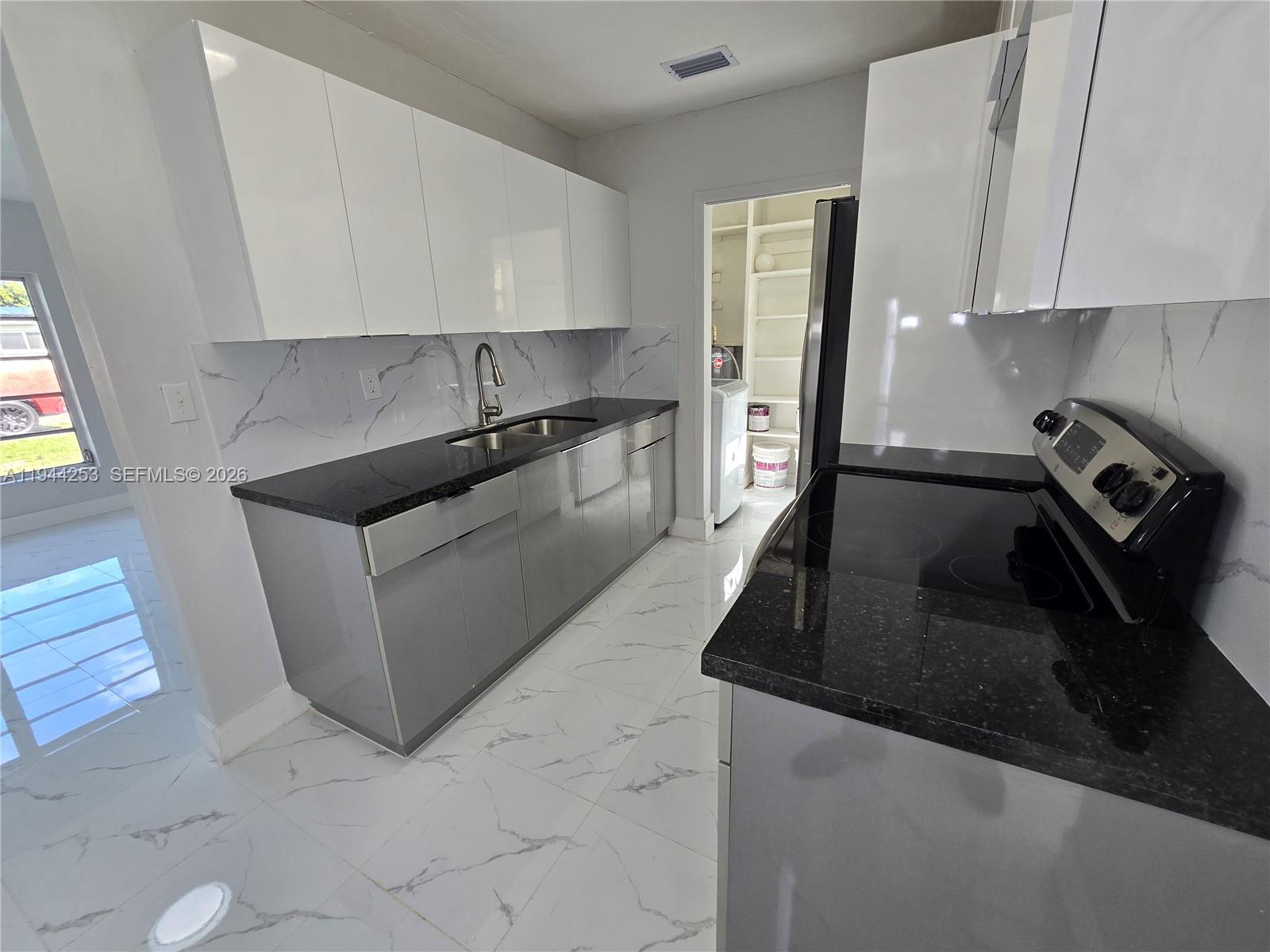 Beautifully updated 3-bedroom single-family residence ideally located just off Ives Dairy Road. This home features a completely remodeled kitchen with new refrigerator and stove, along with renovated bathrooms and new flooring throughout. Enjoy a large, open living room and dining area, perfect for entertaining or family gatherings. The property includes a washer and dryer and boasts a generously sized backyard, ideal for outdoor enjoyment. Conveniently located with easy access to I-95, and just minutes from Aventura Mall, Gulfstream Park & Shopping Village, dining, and entertainment. Situated in a quiet and desirable neighborhood. This is truly a must-see home—vacant and easy to show.