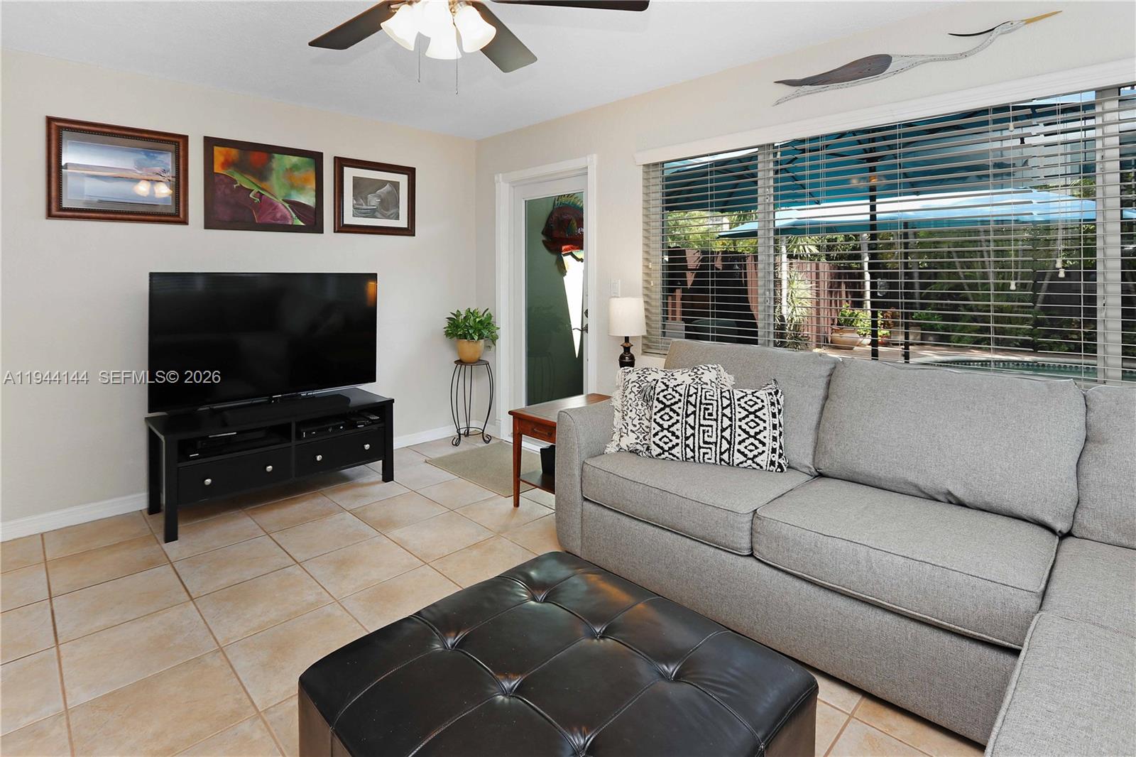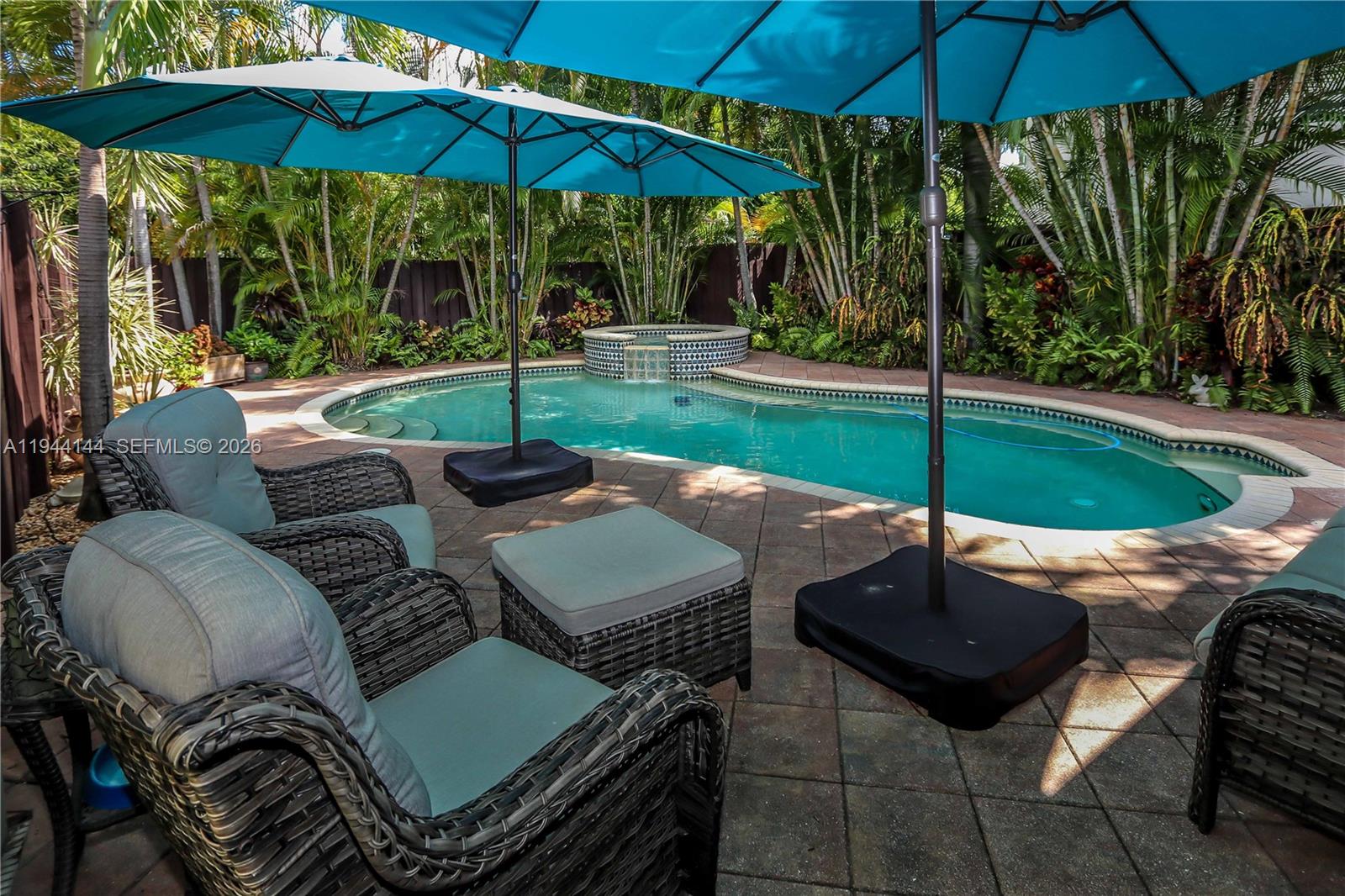 Charming and spacious 2-bedroom, 2-bath pool home with the flexibility of a third bedroom, ideally located in the heart of Hollywood Lakes. Enjoy the ultimate South Florida lifestyle with the beach, downtown Hollywood, dining, and entertainment just a short walk away. The home features a bright, inviting kitchen with white cabinetry, black granite countertops, a farmhouse sink, newer stainless steel appliances, and a gas stove—perfect for everyday living and entertaining. The open layout includes a comfortable living room and a formal dining area, along with a versatile family room with a closet that can easily function as a third bedroom, home office, or den. Both bathrooms have been tastefully updated with marble mosaic flooring and rain showers. The guest bathroom offers a double vanity and a spacious two-person soaking tub for added comfort. Step outside to your private backyard oasis, complete with a solar-heated saltwater pool featuring a built-in jacuzzi and waterfall. Surrounded by lush landscaping and multiple outdoor lounging and entertaining areas, this space is ideal for relaxing or hosting friends and family. Additional features include impact windows and doors, a one-car garage, a double front driveway with extra parking in the rear, a newer electric water heater, and beautifully maintained landscaping throughout. This is a great rental opportunity in one of Hollywood’s most desirable neighborhoods.