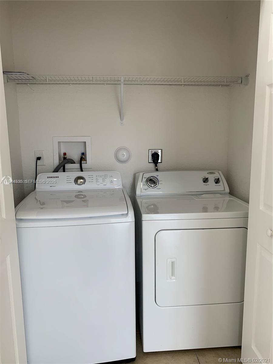 Las Sevillas at Fontainebleau. LAKE VIEW, Apt. 3 BR/2.5 bath, 2 stories with 1445sq.ft. Tile and grey vinyl water proof floors. KITCHEN WITH GRANITE COUNTER TOPS AND APPLIANCES SS. WASHER AND DRYER inside unit, TWO PARKING SPACES ASSIGNED and guess parking. Association including INTERNET service. Surrounding lakes, community pool & wide walking trails, security 24 hours. Located very close to schools, close to Miami International Airport, main highways 826 and Turnpike, only 10 minutes to the Miami International Airport, Dolphin Mall, Downtown Doral, near Shopping and Restaurants. The apartment is occupied by the tenant until January 27, 2026.