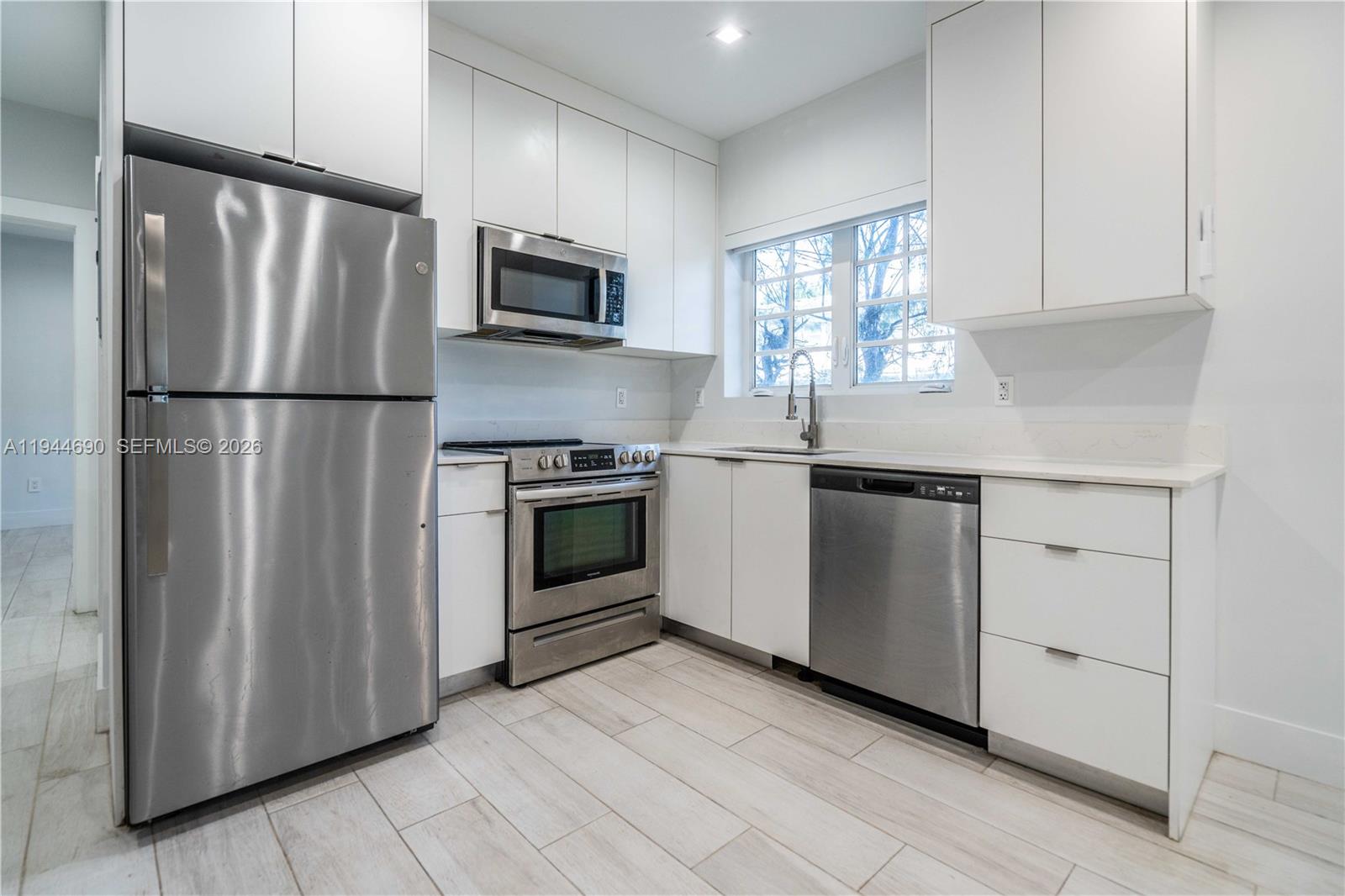LIMITED-TIME SPECIAL! Net rent shown includes prorated free month. Gross rent is $3000. Free rent is applied as a 1 month credit on a 13 month lease. Nestled in the heart of a vibrant neighborhood is a stunning property that blends historic charm w/ modern amenities. This bright and airy corner residence features a modern and upscale kitchen, with SS appliances & quartz countertops , wood-toned porcelain flooring throughout, chic bathroom w/ glass shower doors, vanity mirrors with lighting and anti-fog, spacious bedroom w/ ample closet space, and en-suite W/D. Perfect for the active lifestyle-just 1 block to Flamingo Park! Enjoy incredible facilities like Tennis, basketball, racquetball, lap pool, track & more. Walk to Whole Foods, and a plethora of cafes, shops, eateries and entertainment. This home provides a perfect mix of convenience and community. *Water billed accordingly. *Check out the Virtual Tour!