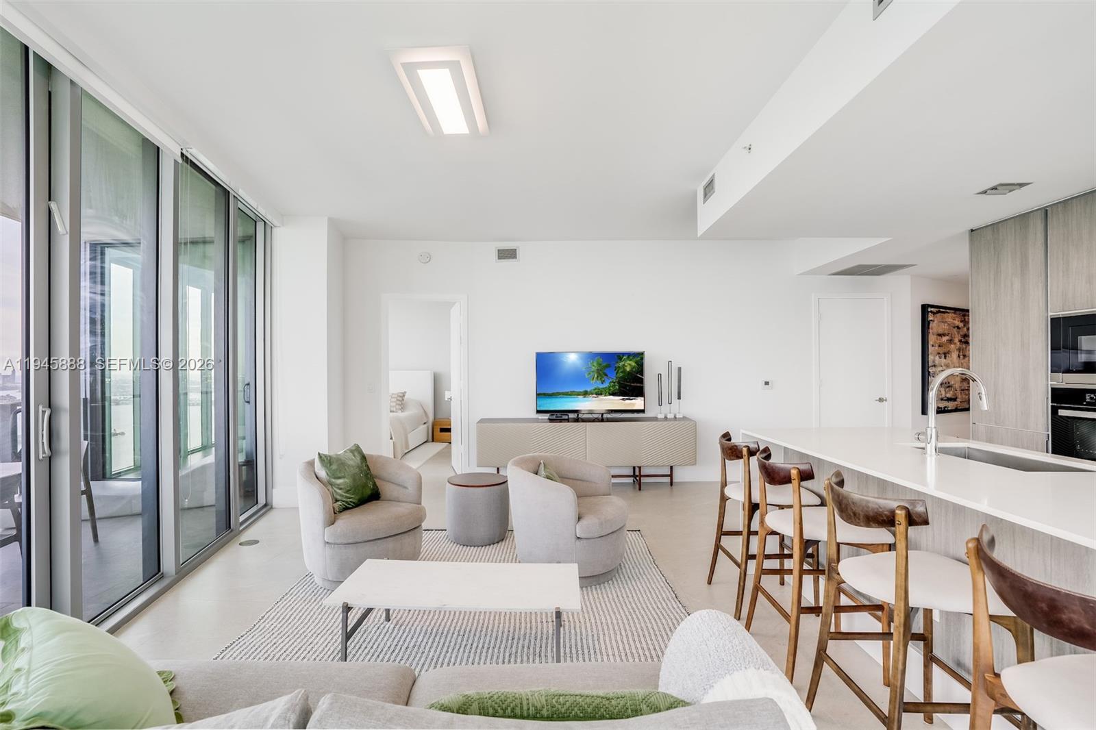 Discover unparalleled luxury in this exquisite corner residence at Biscayne Beach. Boasting 3 bedrooms + den, and 4 bathrooms with a private elevator, this spacious unit is adorned with sophisticated furnishings and offers breathtaking panoramic views. Located in the lively Edgewater area, it provides convenient bay access and an impressive array of resort-style amenities. Residents can enjoy the exclusive Beach Club & Lounge, unwind in two sparkling pools, or engage in sports at the Tennis and Basketball courts. Additional features include a soothing Spa & Hot Tub, a serene Sauna, Massage suites, and a state-of-the-art Fitness Center.