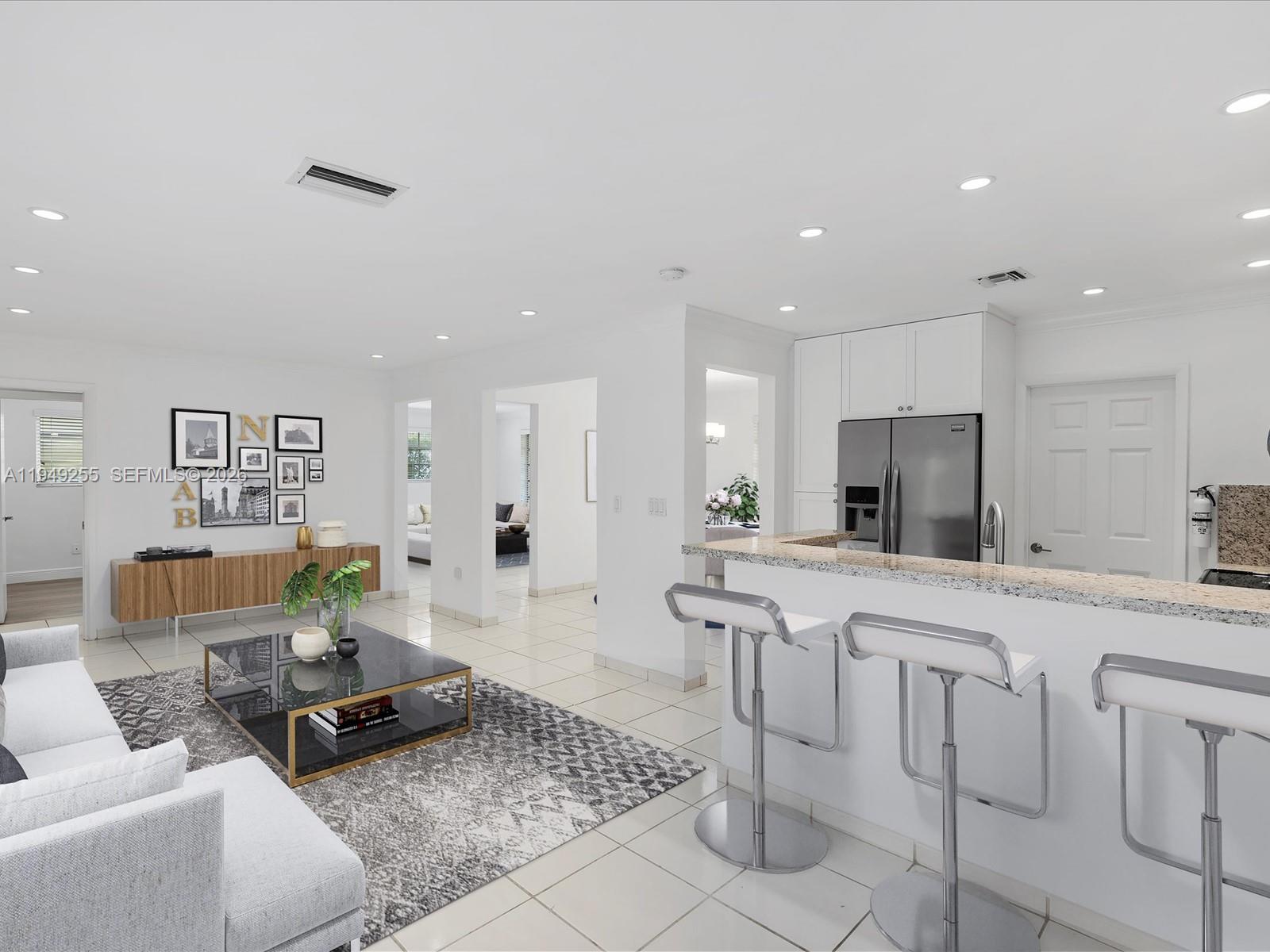 Beautifully Updated Coral Gables 3 Bedroom 2 Bath home on a lovely tree-lined, very low-traffic street. Fully remodeled with New Open Kitchen with 42" White Single Shaker style cabinets and Stainless Steel appliances! Large 1 Car Garage with Full Size Washer & Dryer! 2-Zone Rheem A/C System and Recessed Lighting throughout! Family Room, Formal Living Room, Formal Dining Room and Breakfast Area. Master Bedroom with California Walk-In Closets and Marble Bathroom with Double Sink and spacious, Frameless glass-enclosed shower! Circular Driveway, Fenced Backyard and a Covered Patio for BBQ & Entertaining outdoors! BEST RENTAL IN CORAL GABLES UNDER $5,000! Call Carlos for easy showings!