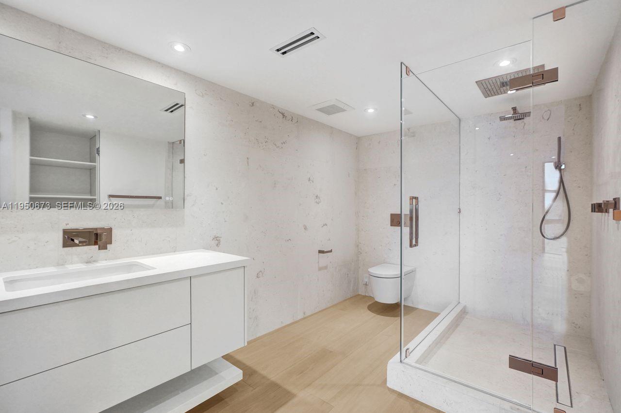 This exceptional oceanfront residence has been fully remodeled to the highest designer standards, offering direct, unobstructed ocean views. The home features white oak wood floors and doors, blackout blinds in the bedrooms, custom cabinetry throughout, and refined copper fixtures. The kitchen is appointed with Taj Mahal quartzite countertops, handle-less Miele appliances, a press-to-open refrigerator, and a knock-activated dishwasher. The guest bath includes a Thermaspa and jacuzzi tub, while the primary bath offers three separate shower valves and Duravit by Starck Japanese toilet. A sophisticated, thoughtfully designed home ideal for the most discerning tenant.
