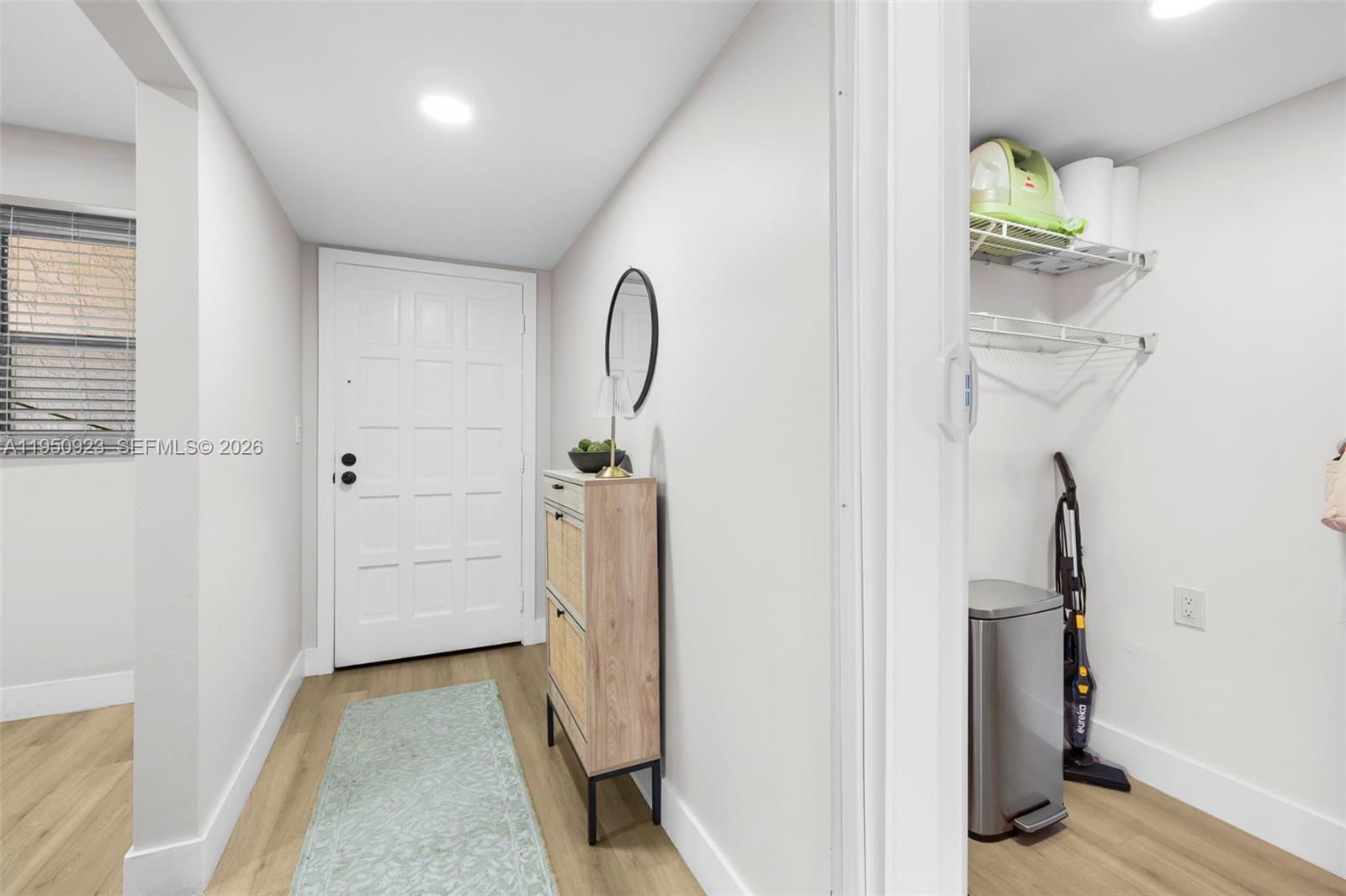 Live well at this fully remodeled 2 bedroom/2 bath first-floor condo with abundant storage. Features four walk-in closets, including one by the kitchen that can be used as a pantry or extra storage. Bright corner unit with added privacy and no stairs or elevators needed to access the unit. Enjoy a screened-in balcony with direct access to the pool area and garden views. Open floor plan, large living area with neutral laminate flooring throughout. Kitchen has all new stainless-steel appliances, stove/oven, microwave, dishwasher, fridge and garbage disposal. Unit is assigned 1 parking space right in front of the unit with plenty of guest parking spaces. Rent includes water, sewer, garbage, Comcast Cable TV & High speed internet, pest control, pool service, and exterior maintenance. Enjoy peaceful garden views, abundant natural light, and a quiet setting in a gated community with 24-hour security. Schedule your appointment today!