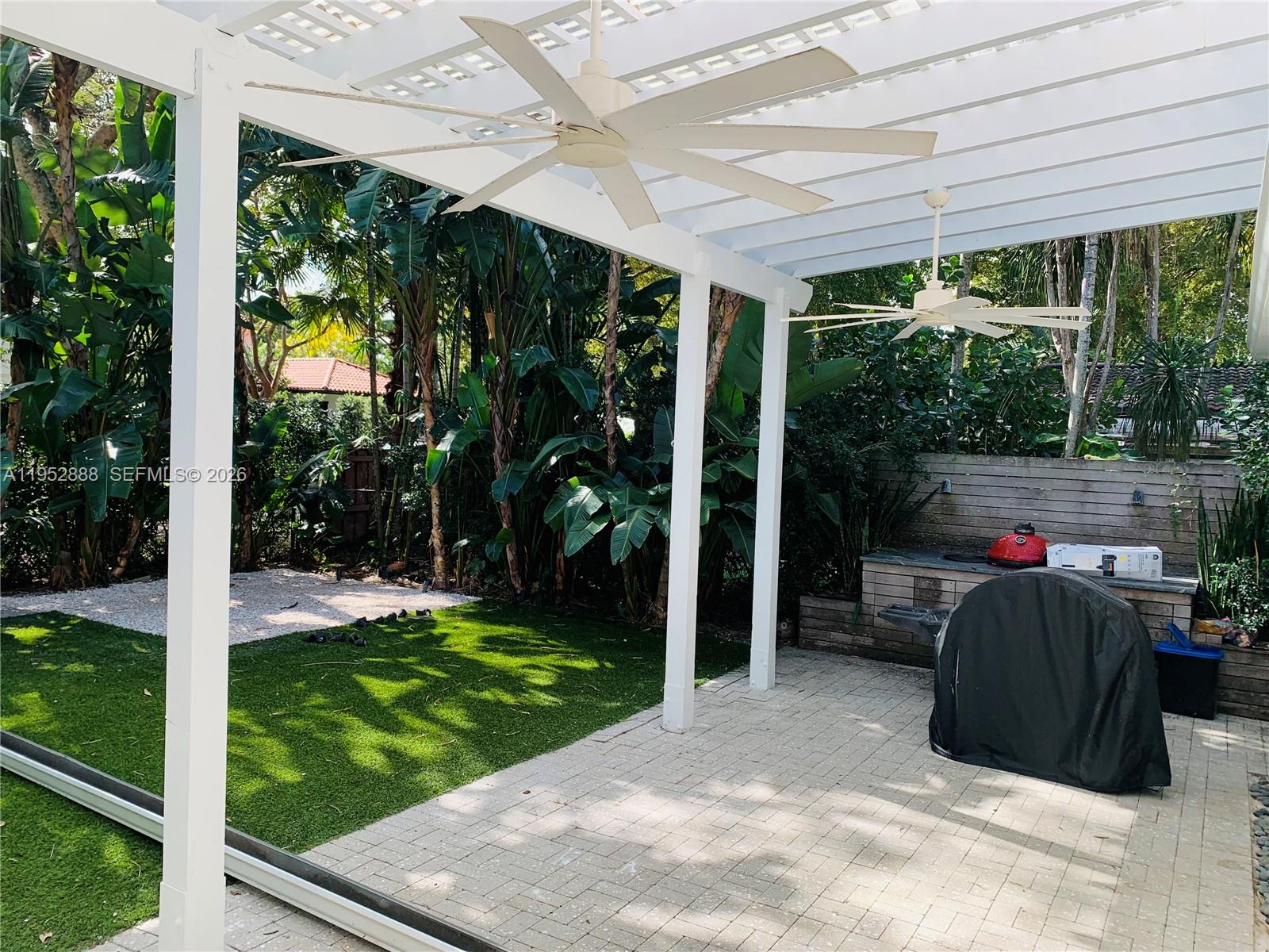 Beautifully redone Cottage on a lush & quiet tree lined South Grove street, 40' from Merri Christmas Park. 1,480 sf. encompassing 3 bedrooms & 2 baths & a large family room. Impact Resistant windows & Doors, new roof, kitchen and baths. The property was exquisitely remodeled in light tone in Cream colored porcelain tiles, Carrera marble. Drop down projection screen/projector in living area. Beautifully appointed large eat in kitchen which opens up to a covered terrace and yard. Master bath focusing on a strong attention to detail, all resting on corner lot. 24 hour notice to show.