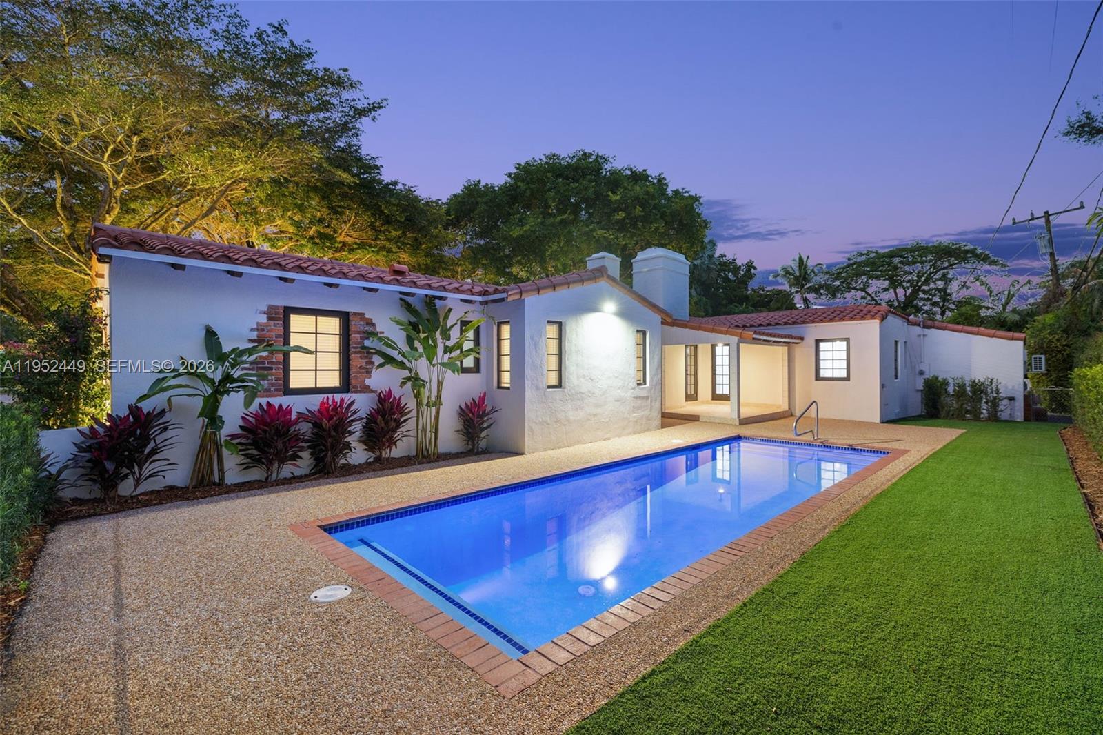 [A Miami Signature Home] Nestled in the heart of the coveted Golden Triangle, this storybook, historically designated 3/3+office home is a true gem where timeless charm meets modern luxury. Fully restored and move-in ready, this one-level residence offers effortless living with thoughtful updates throughout. Soaring cathedral ceilings, impact windows and doors, and impeccably designed spaces exude warmth and character at every turn. The home features three zones of air conditioning, ensuring year-round comfort, while the luxe garage is a standout in its own right. This fully finished space boasts custom cabinetry, a refrigerator, sink, washer, and dryer—and it’s EV-ready, so bring your electric cars! Whether you’re dreaming of a man cave, workshop, or something else entirely, this space is ready to deliver. Every detail has been considered to make this home as functional as it is beautiful. Situated in a prime location, you'll enjoy unparalleled convenience to everything—shops, dining, parks, and more. Don’t miss the opportunity to lease a piece of history in one of the most sought-after neighborhoods in town!