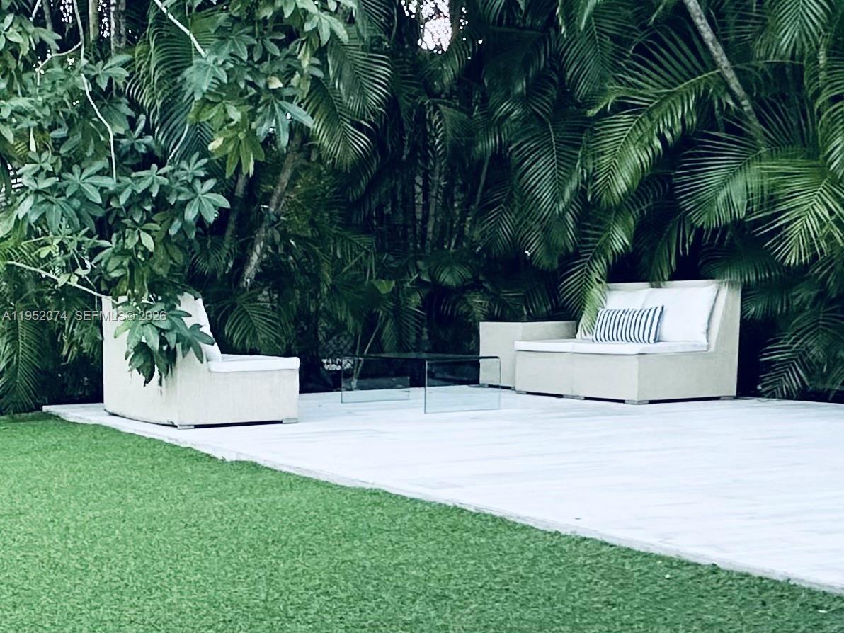 Located in one of Coral Gables' most sought-after neighborhoods. This beautifully designed 4-bedroom, 2-bath residence includes an additional garage conversion, ideal as a home office, guest room, or playroom. The home features large-format natural Spanish Crema Marfil marble flooring throughout the main areas, creating a bright, seamless flow. The open-concept kitchen is designed for both everyday living and entertaining, with fully panel-integrated appliances, a Wolf hood, and a generous island perfect for gathering and hosting. Energy-efficient LED lighting is thoughtfully integrated across the home. A Bowers & Wilkins surround sound system runs throughout the home, elevating the living experience. The bedrooms feature original, beautifully preserved wood floors, adding warmth and character. Bathrooms are finished with marble flooring and glass tile showers, creating a clean, modern finish. The outdoor spaces include marble-finished decks that extend the living areas outdoors, ideal for entertaining, barbecues and family gatherings. The lush, private backyard offers a quiet retreat free of visible AC units or mechanical equipment. A marble driveway completes the home's exterior. Set on a quiet, beautiful street with a family-friendly community, the home is walking distance to UM and the Coral Gables Country Club, and just minutes from Whole Foods, Publix and top medical centers. A rare opportunity to lease a refined Coral Gables residence.