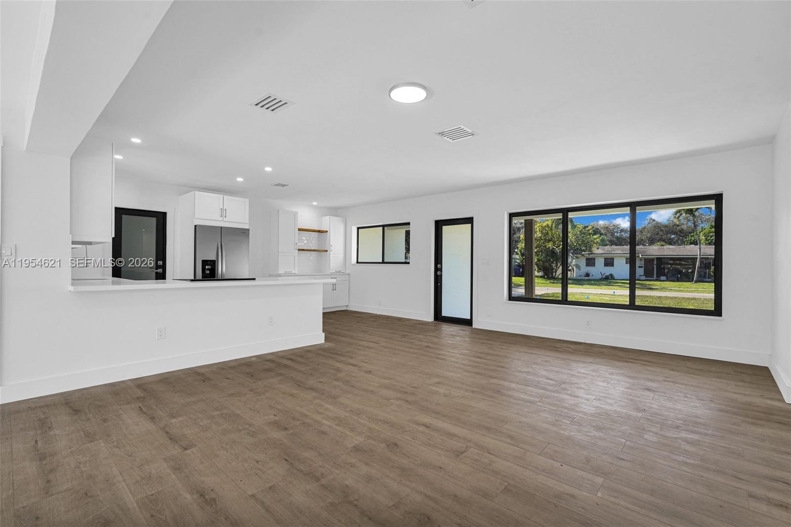 This fully renovated single-family home offers a perfect blend of modern style and everyday comfort, featuring brand-new floors, a sleek new kitchen with all new appliances, and beautifully updated bathrooms throughout. Designed with an open floor plan and floor-to-ceiling windows along the rear of the home, the space is filled with natural light and flows seamlessly to a large backyard and outdoor patio—ideal for entertaining or relaxing. Additional highlights include impact windows and doors, a brand new roof, a full-size washer and dryer, walk-in closets, and a one-car garage, making this move-in-ready home both stylish and functional.