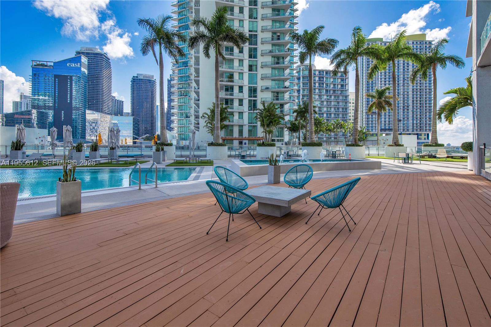 Enjoy breathtaking city views from this 44th floor unit at The Ivy Condo. This 2 bed / 2 bath split floor plan unit has an Italian kitchen with stainless steel appliances, quartz counter tops, washer/dryer in unit, porcelain and laminate flooring, and hurricane impact windows. Centrally Located - walk to Brickell City Centre for shopping, restaurants, and entertainment, or walk to work to the Brickell Financial district, or Downtown Miami areas; short drive to MIA Airport. Amenities include two pools, spa, fitness center, game room with pool table, BBQ area, business center, recreational room, kids playground, and convenience store. Internet, cable, and water included. Gated and secure full-service resort style building with 24 hour security, valet parking, and 1 assigned parking space.