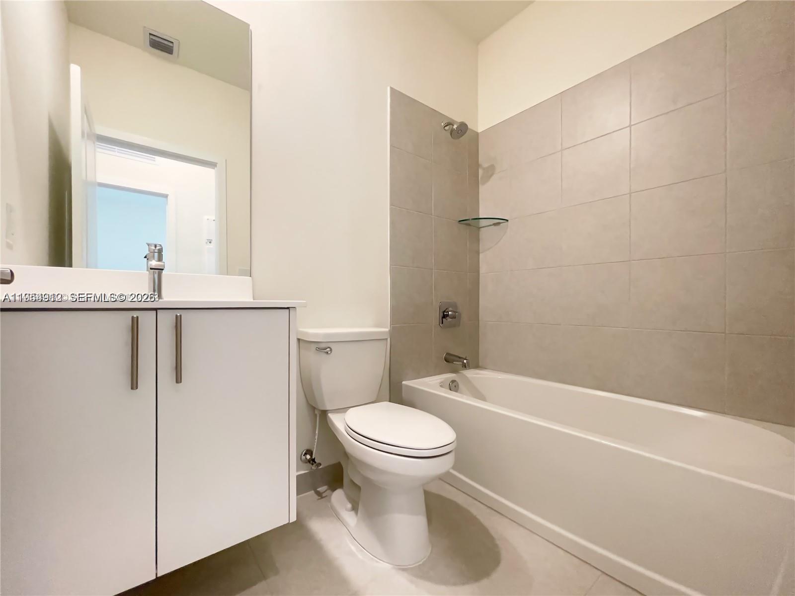 DOWTOWN DORAL TOWNHOUSE with 3 Bedroom and 2.5 baths, tile floor and carpet on the second floor and stairs, stainless steel appliances, washer and dryer, A/C system and blinds, the kitchen features Modern white Wood-Finish Cabinets, Quartz top, covered patio space to entertain family and guests, garage double, balcony, Private clubhouse, gym, playground, swimming pool, game room, 24 hours security.
