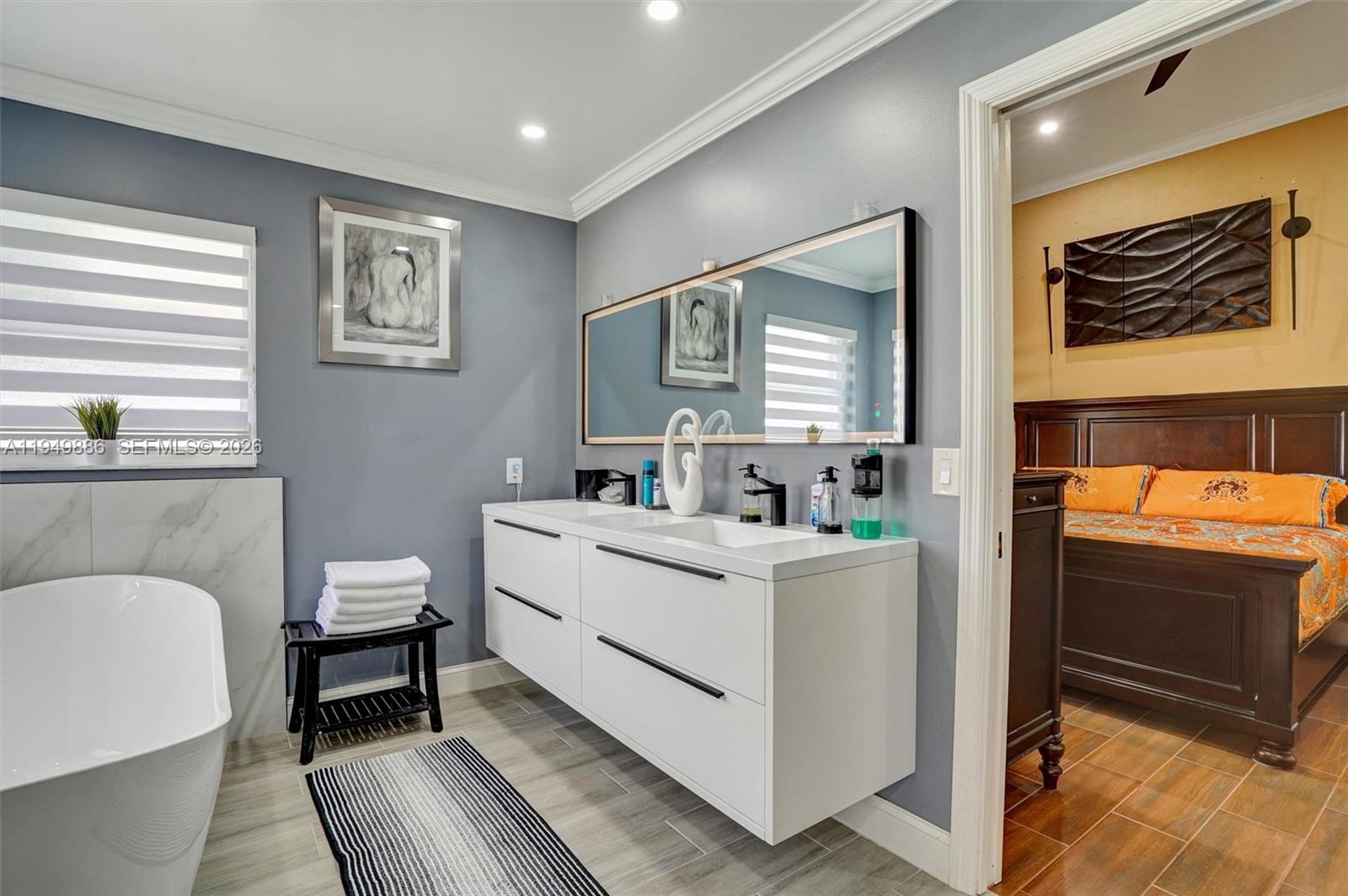 Beautifully updated 3-bedroom, 2-bath single-family residence offering a bright, open layout with abundant natural light. Features brand-new flooring throughout, an upgraded kitchen with granite countertops and stainless steel appliances, stainless steel appliances, and a front-load washer and dryer. Select windows are equipped with automated blinds for added convenience. The owner’s suite includes a spa-style bathroom with a standalone soaking tub and separate shower, while the second bathroom has been tastefully updated. Enjoy outdoor living with a screened patio, private pool, covered hot tub, and monthly pool maintenance included in rent. Located in an area served by A-rated public and charter schools. A turnkey home ideal for comfortable living and entertaining.