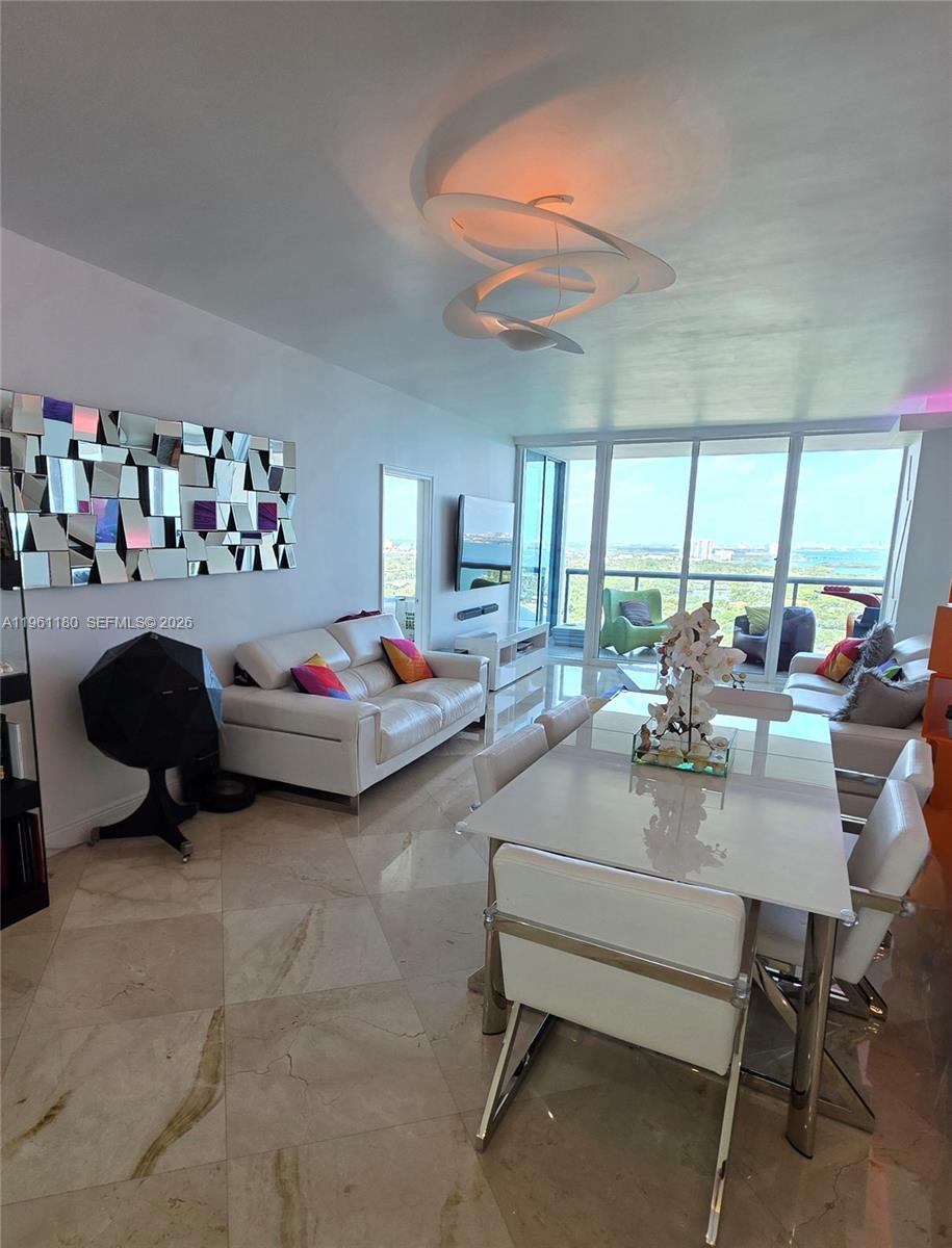 Beautiful and bright updated spacious apartment with beautiful water views from floor to ceiling impact glass in primary bedroom and living area. Impeccable modern kitchen with newer appliances. Two spacious bedrooms and two complete bathrooms for each bedroom plus a half bathroom for guests for your privacy. Balcony with impact doors and marvelous water views. Apartment is rented fully furnished with modern white furniture. Indirect lighting in living area (can be adjusted to a variety of colors), wall lighting and modern chandelier in the dining area. Remote control blinds including black outs in primary bedroom and zebra design living area and 2nd bedroom. 2nd bedroom has a modern, nice wall furniture that converts to murphy bed for additional space or guests in second bedroom. The building is in a great location minutes from the main attractions and needs, a bridge to Miami Beach and its beautiful beaches, 15min to the airport, 5 min to Downtown Miami, 5 min to Port of Miami, Miami Opera, Kaseya Center, Arts, Wynwood, Midtown and 3 minutes from the main Highway I-95. Can't beat its location. Building has state of the art amenities;Gym, spa, bbq area, 2 large pools, hammocks, 4 jacuzzi, party room, wonderful large media room, game room, 24/hrs self-serve super market, Movie room, kids very large play room, amongst other things.