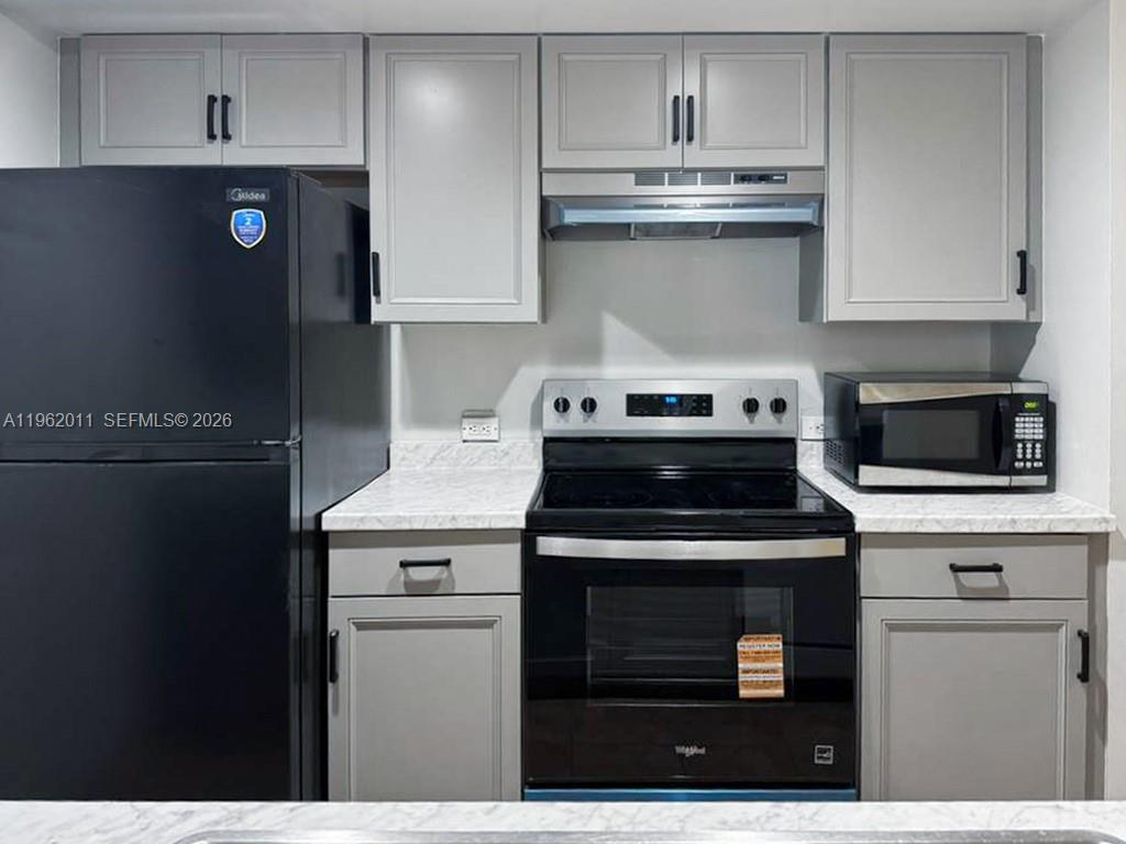 Spacious and quiet 2BD/2BA condo in the Devonaire community in Pembroke Pines offers comfortable living in a convenient location. This unit features brand new kitchen cabinets, stove/range, microwave and refrigerator and updated bathrooms with new vanity and bathtubs. The unit features separate dining and living rooms, 2 generous-sized bedrooms, and a patio off the living room. Both bedrooms have wall-to-wall carpeting (deep cleaned) and ample closet space. The primary bedroom has an en suite bath. In-unit washer and dryer for added convenience. Unit includes two reserved spaces. This gated community includes a pool and fitness center and kids jungle gym. Located in the heart of Pembroke Pines, you'll have easy access to major highways, top-rated schools, and a variety of shopping and dining options. Enjoy the serene surroundings while being just a short drive away from the vibrant city life. Please no pets.