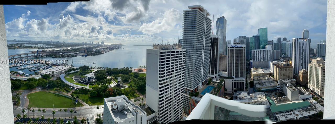 Gorgeous FULLY FURNISHED Corner Unit , with wrap around South East Exposure, direct Bay and Downtown views, 2 Bedroom + 2 Baths + Den( complete bedroom set up w/queen size bed), top of the line appliances, washer & dryer, assigned covered parking, 24/7 valet and security, walking distance to Miami arena, banks, restaurants, 100,000 SQFT amenity deck on the 8th floor, 4 pools, tiki bar and grill area, fitness center, steam room, sauna, treatment rooms, yoga, exercise, business center, theater and more! Just bring your suitcase! Avail March 1st.