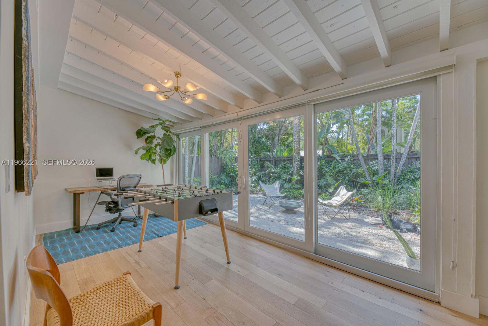 Beautiful 3/2 home on a quiet tree-lined street in lush, South Coconut Grove. Located just steps to Merrie Christmas Park with it’s canopy of majestic banyan trees. Totally renovated including hurricane impact glass throughout in non-flood zone. House is light-filled, open living spaces w/ vaulted-beamed ceilings and real wood flooring. Custom kitchen features white wood cabinetry, quartz countertops, stainless appliances & center island w/ bar seating. Master suite has his and her closets and frameless glass shower. French doors & walls of glass overlook the ultra-private & expansive tropical garden w/ Avocado & Mango trees and pool. Walk or bike to the Grove village center’s galleries, boutiques, cafes and bayfront parks & marinas. Location, location, location.