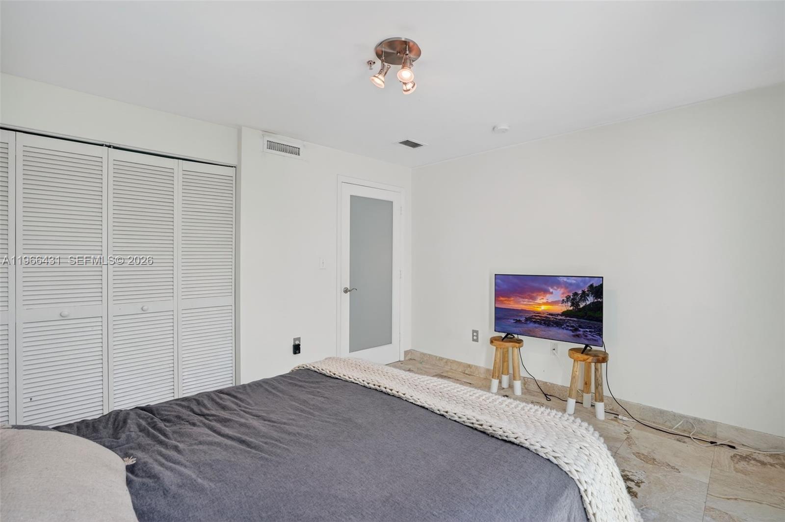 Discover a rare opportunity to lease a sophisticated bi-level loft with soaring 20-foot ceilings at the boutique Vilasol Condominium, ideally situated across from Altos del Mar Park with direct beach access just steps away. Embrace the coveted North Beach lifestyle, surrounded by scenic boardwalks, volleyball courts, pet-friendly parks, kid-friendly playgrounds, picnic areas, acclaimed dining, and the ocean at your doorstep. Inside, the open loft-style glass enclosed primary suite occupies the upper level, complete with an ensuite bathroom, washer & dryer, and private balcony. The guest bedroom and second full bath are thoughtfully positioned on the main level, where a beautifully updated kitchen awaits—featuring Italian cabinetry, high-end appliances, and stone composite countertops. Tiled throughout, the residence showcases floor-to-ceiling windows, and custom shelving that enhance both style and storage. Ascend to the rooftop and retreat to your spacious private cabana with southeast views and adjacent to the building’s serene plunge pool. From this exclusive vantage point, savor sweeping sunrise and sunset views that stretch across the ocean and shimmer over the city skyline. Additional features include secure building access with a Ring call box for guests, one gated and covered assigned parking space, and one additional space available for rent. 2 pets allowed.