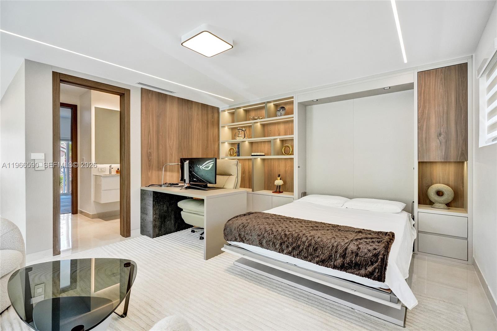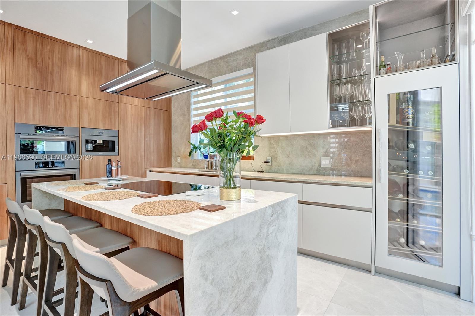 Experience elevated living in the heart of Aventura. Located within a gated community, this fully furnished **corner single family residence** offers 3 bedrooms plus a dedicated office with Murphy bed and private gym area, all completely remodeled with the finest custom finishes and exquisite Italian furnishings throughout. Enjoy dramatic 22-foot ceilings that fill the living spaces with natural light, complemented by sleek glass railings that enhance the home’s open architectural design. Expansive sliding patio doors seamlessly connect the indoors and outdoors, creating effortless indoor-outdoor living and entertaining. The home features marble floors on the first level and Spanish porcelain upstairs. The gourmet kitchen is appointed with Taj Mahal quartzite countertops, a built-in Miele coffee system, and Miele wine cooler. Custom doors, architectural wall panels, designer wallpaper, Toto wall-mounted toilets, custom closets, electric blinds, and LED ceiling lighting elevate the modern aesthetic. Upstairs, the office/loft includes an Italian Murphy bed, lounge area, and dual workstations—ideal for remote work while easily converting into a guest space. The outdoor oasis features a resort-style pool with cascading water feature, lush landscaping, and a custom BBQ area with seating and built-in beer tap. Offered fully furnished for the most discerning tenant seeking luxury, privacy, and prestige in one of Aventura’s most desirable locations.