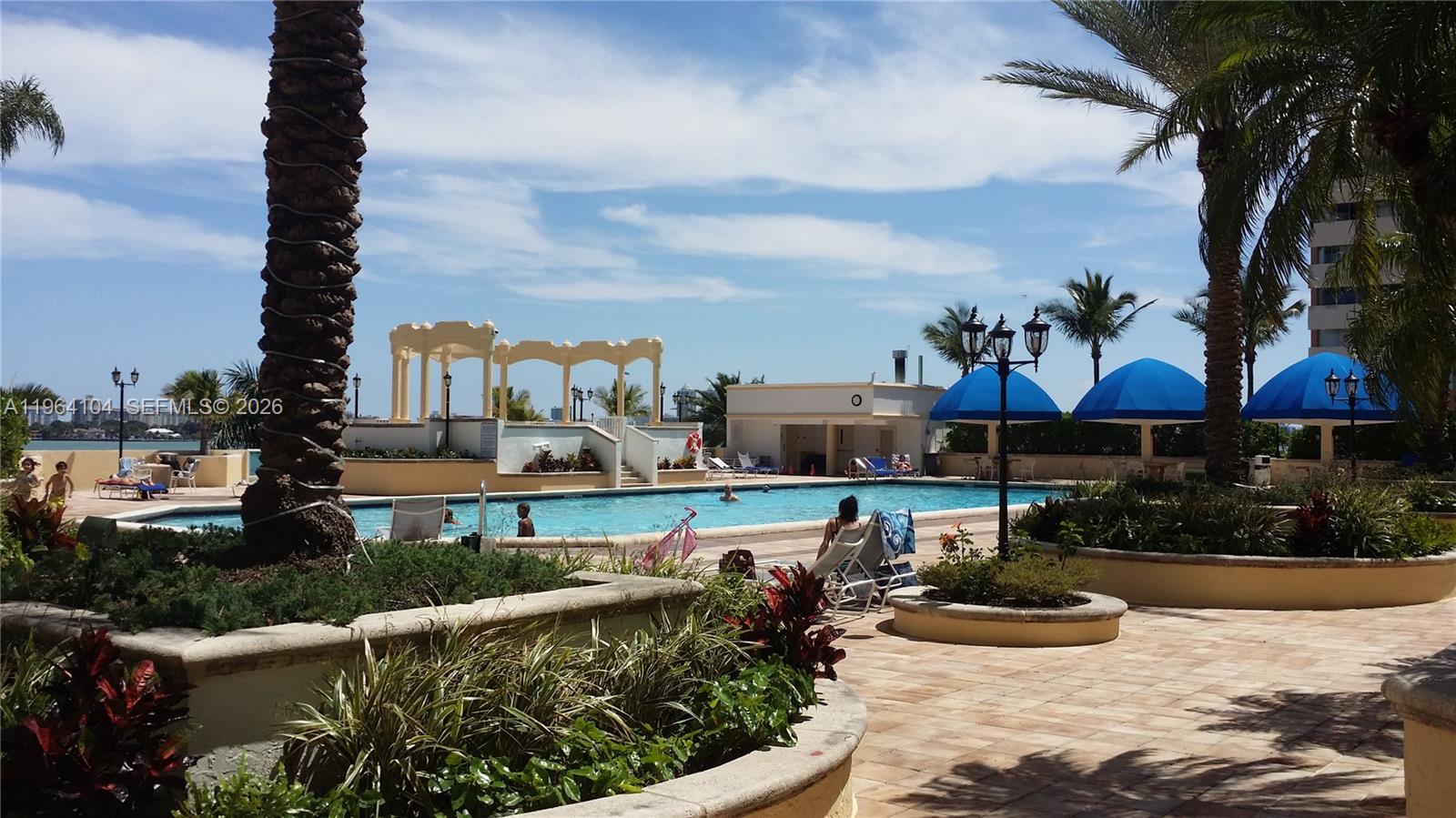 Bright and spacious 2-bedroom, 2-bath condo at Grandview Palace in North Bay Village. Enjoy stunning bay views from every room. This upgraded unit features granite countertops, stainless steel appliances, tile and laminate flooring throughout (no carpet), and an in-unit washer and dryer. The building offers many amenities including a community pool, 24-hour security, clubhouse, laundry facilities. 1 assigned parking space included. No pets allowed per association. Association requires $500 refundable deposit per applicant. Fantastic location with easy access to Miami Beach, highways, & shopping. Available for immediate move-in—easy to show.