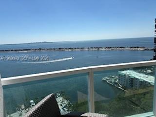 Direct and breathtaking bayfront views from this corner 2/2 spacious unit with floor to ceiling high impact windows and doors! Open balcony, 2 covered assigned parking spaces (side by side), full service building with 24-hr front desk service, security, valet parking, marina, spa, sauna, fitness center, cafe/convenience store, BBQ area, tennis courts, party room and more! Great amenities!