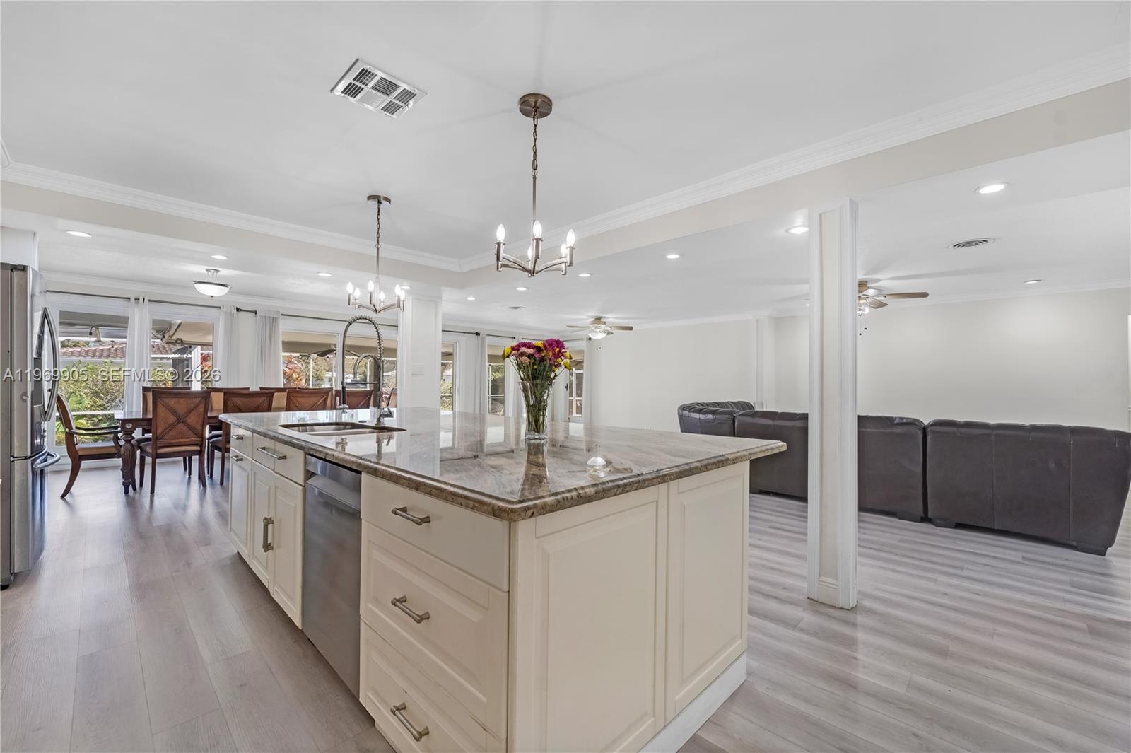 Impressive Spacious 2,814 SF residence on an oversized corner lot in the desirable Orangebrook Golf area of Hollywood. This bright split-level home offers an open layout designed for comfortable family living and entertaining. The expansive living and dining areas flow seamlessly into a stunning kitchen featuring a spectacular oversized marble island, abundant cabinetry, spacious pantry, gas cooktop with hood, double wall ovens, large modern refrigerator, and stainless steel appliances throughout. * A private in-law/guest suite with its own full bathroom and separate entrance provides flexibility for extended family, guests, or a home office. An additional room offers ideal space for a den or workspace. * Outdoor features include a screened-in pool, as well as expansive covered patio and porch areas that provide generous space for hosting family and friends, weekend BBQs, and outdoor gatherings, all framed by mature hedges that enhance privacy. The surrounding yard is thoughtfully designed for low-maintenance living. * The oversized driveway provides abundant parking space. Renovated bathrooms and new laminate flooring throughout complete this move-in ready home. * Located in a quiet, low-traffic neighborhood directly near the golf course, major highways, train station, shopping, dining, medical facilities, and approximately 15 minutes from the beach. An exceptional rental opportunity offering space, privacy, and a prime central location. An outstanding place to call home.