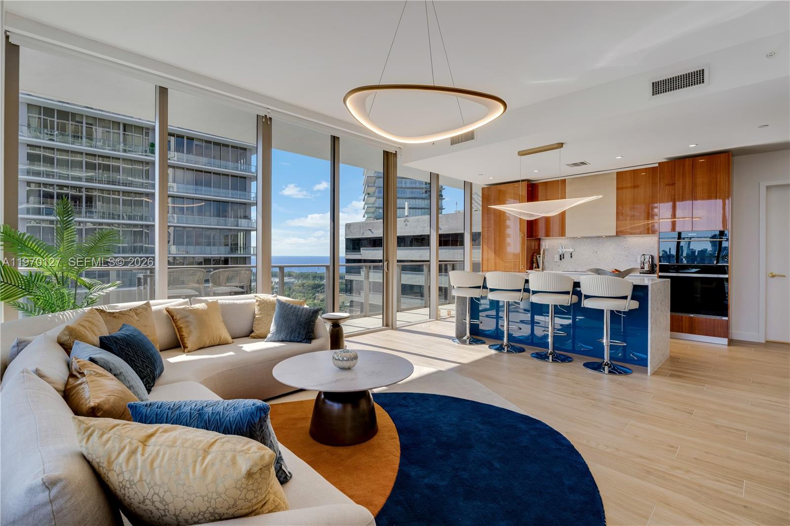 Indulge in a rare seasonal offering at Mr. C Residences Coconut Grove, where timeless European elegance meets waterfront serenity in the heart of Coconut Grove. Available now through December, this fully furnished 2-bedroom, 2.5-bath corner residence delivers refined living at its finest. Floor-to-ceiling glass and a wraparound terrace showcase spectacular water and city views, filling the home with natural light and creating a seamless indoor-outdoor flow. Soaring ceilings and porcelain floors highlight the Italian-designed interiors, including a sculptural kitchen with custom cabinetry, premium Wolf and Sub-Zero appliances, and bespoke built-ins throughout. Custom-built elements, integrated Sonos sound system, and electrical blinds and screens enhance modern comfort. The primary suite offers a spa-inspired retreat, while the guest suite ensures privacy and comfort. Turnkey and move-in ready, this home blends style with effortless seasonal living. Residents enjoy Mr. C’s signature white-glove lifestyle, including 24-hour concierge and valet, rooftop and lap pools with poolside service, state-of-the-art fitness center with yoga and Pilates studio, spa amenities, and exclusive resident spaces. All just steps from Bayshore, marinas, fine dining, CocoWalk, and Coconut Grove’s lush parks.
