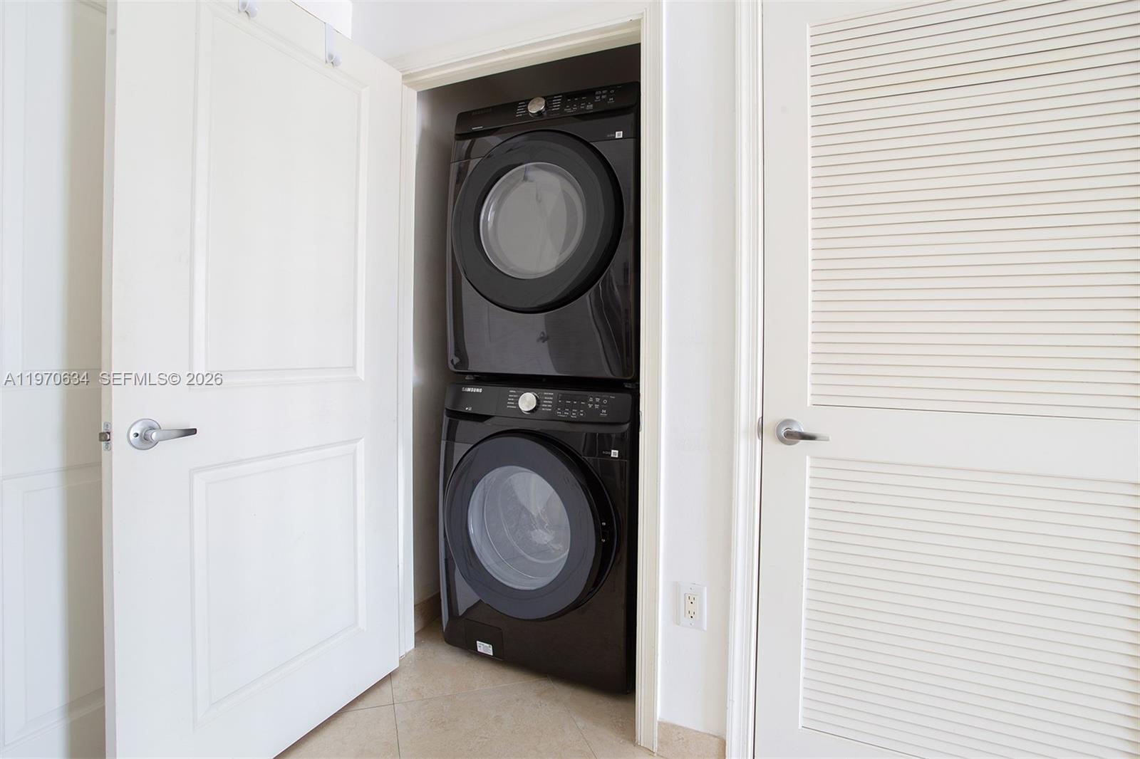 TEN ARAGON Lower Penthouse Only 1BR with TWO Parking Spaces. Rare lower penthouse in the heart of Downtown Coral Gables the only 1-bedroom in the building that includes two assigned covered parking spaces. Top-floor residence with expansive city views and abundant natural light. White kitchen with quartz countertops, glass tile backsplash, and brand new stainless-steel appliances. Neutral slate-tone tile throughout, spacious bath, great storage, and washer/dryer in unit.