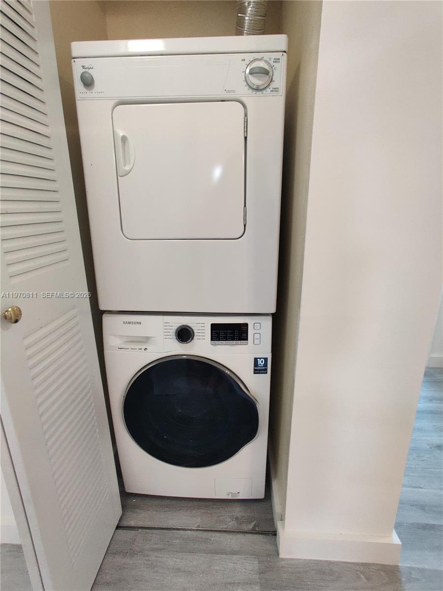 Corner condo on the top floor with recently remodeled open kitchen, newer wood floors, en-suite washer/ dryer. Huge screened balcony with access from the living room & bedroom. 1 deeded parking spot, new elevators, community pool. New a/c & new water heater. Building rules state NO PETS. Close access to 826, turnpike & gratigny expressways. Miami Lakes nightlife & cafes a stone throw away. Water included in rent, local landlord/ agent.