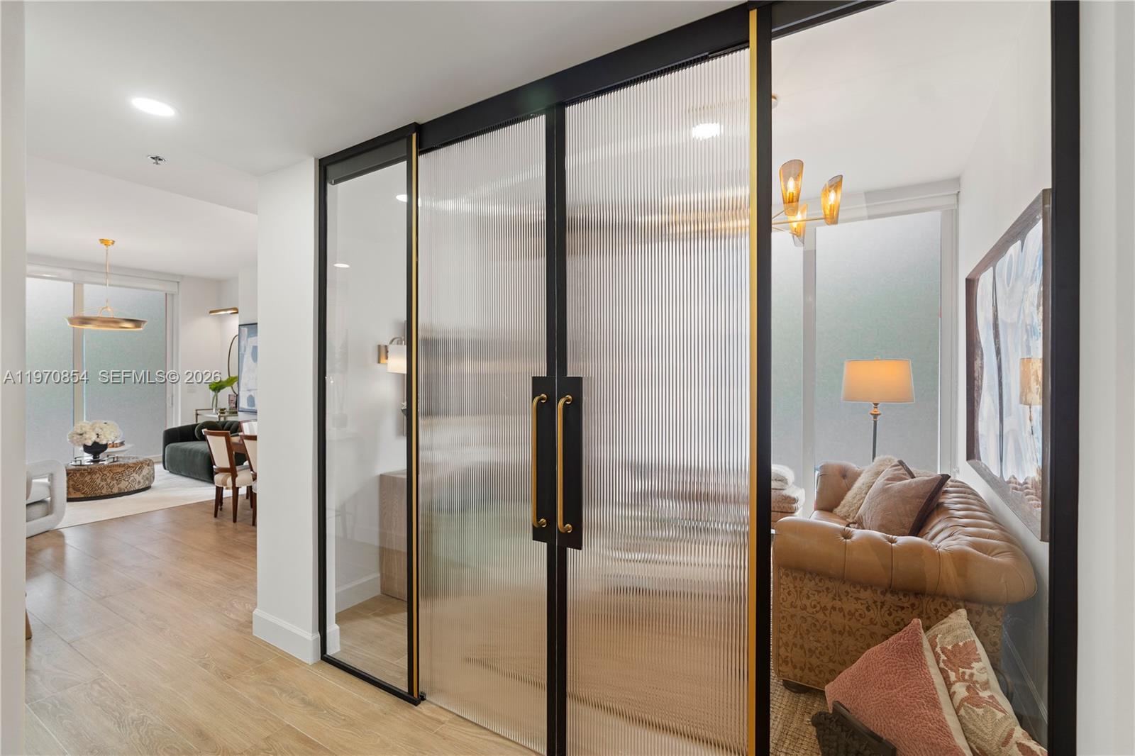 Luxury is measured in the feel ....immerse yourself in the luxury of elevated living in this premium home overlooking Granda Golf course and green tree canopies. This fully renovated three-bedroom two-bath home delivers curated comfort bathed in an abundance of natural light. This turnkey opportunity invites you to move in and simply enjoy exceptional finishes, 10-foot ceilings, and new floor to ceiling impact glass. The luxury of natural colors come to life in color drenched rooms showcasing mixed metals of solid brass and bronze, EMTEK hardware, Visual Comfort lighting, custom glass wall partition, Kohler fixtures, Italian porcelain wood look flooring, marble bath flooring , the exquisite soft veining of Calacatta gold oro, and custom cabinetry throughout. Newly reimagined, the tailored kitchen packs a punch with built in organizational features behind every door and a full suite of new Smart GE Cafe Series appliances in matte white and polished brass. All situated in one of Coral Gables' most desired condominium communities offering 24 hour concierge, privacy, security, renovated meeting rooms and gym, pool, and (soon to be completed well ahead of most other Gables condominium communities) a full exterior restoration resulting in a magnificent premium property. Also listed for SALE MLS: A11886814