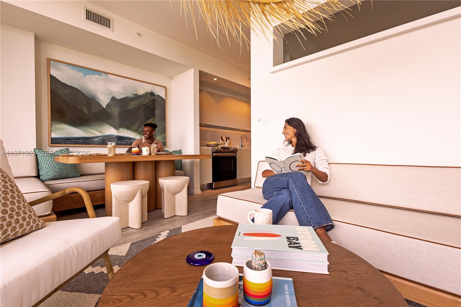 Ocean View Available, River Walk View Available, High Floor Available, Balcony (in select units), Floor-to-Ceiling Windows, Built-in Closets, Refrigerator, Microwave, Custom Italian Cabinetry, Quartz Bathroom Countertops, Glass Showers, Full Size Washer & Dryer, Keyless Entry via Mobile App, Digital Thermostat. Digital Building Access via Flow App, Social Events, Free Weights, Wellness Classes for Body & Mind, Elevator, Covered Parking, Technogym, Fitness Center, Multi-level Coworking Lounge, Private Conference Rooms, Rooftop Pool Deck, Yoga Lawn, Outdoor Theater, Sky Grilling Terrace, Coworking Lounge Terraces, Bumpy Lawn Art Space, Thrive Statue by Daniel Popper