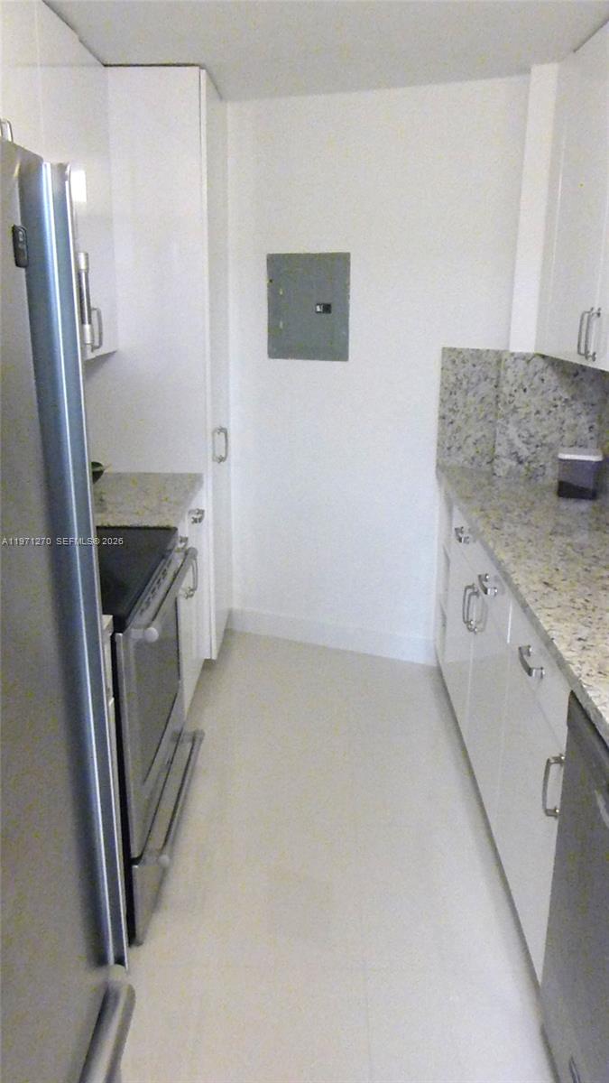 Spacious bright 2 bed 2 bath fully furnished. Split bedroom plan with white porcelain floors thru out. Building has a pool and gym and 24 hr front desk/ valet Steps to the beach and Lincoln road. Water sewer and internet included. Laundry on site